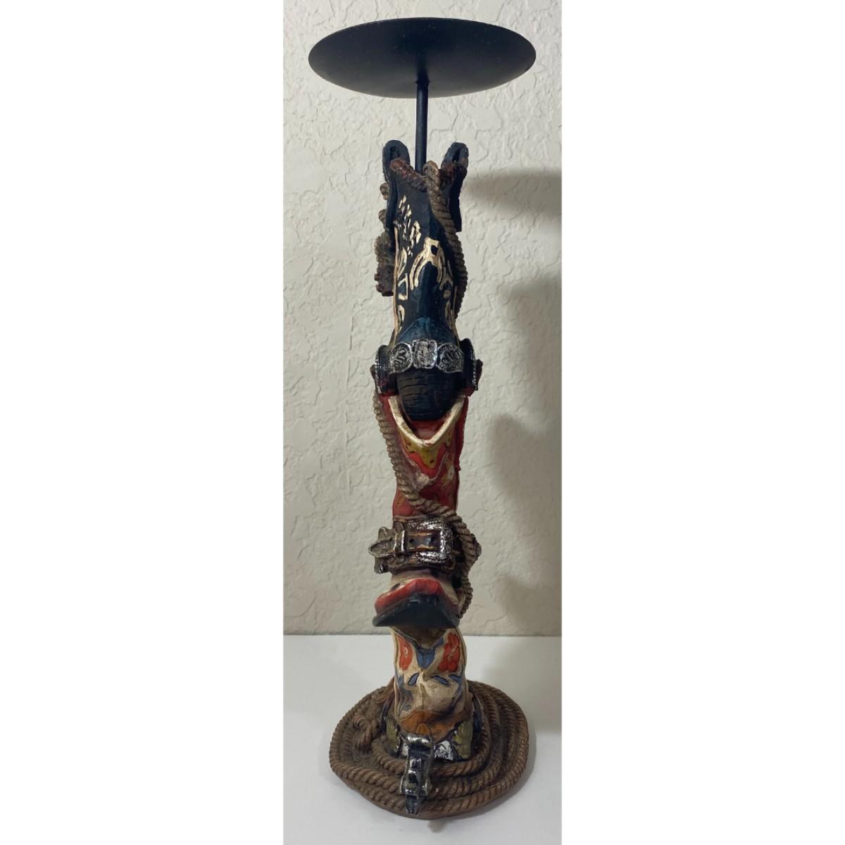 Cowboy Boot Candleholder Cowgirl Western Southwest Rustic Americana Blue Red