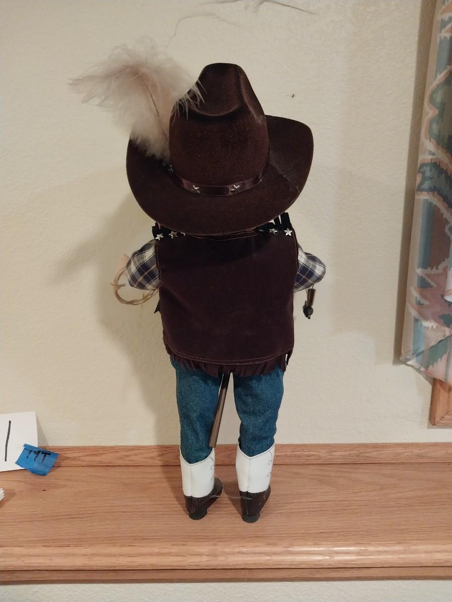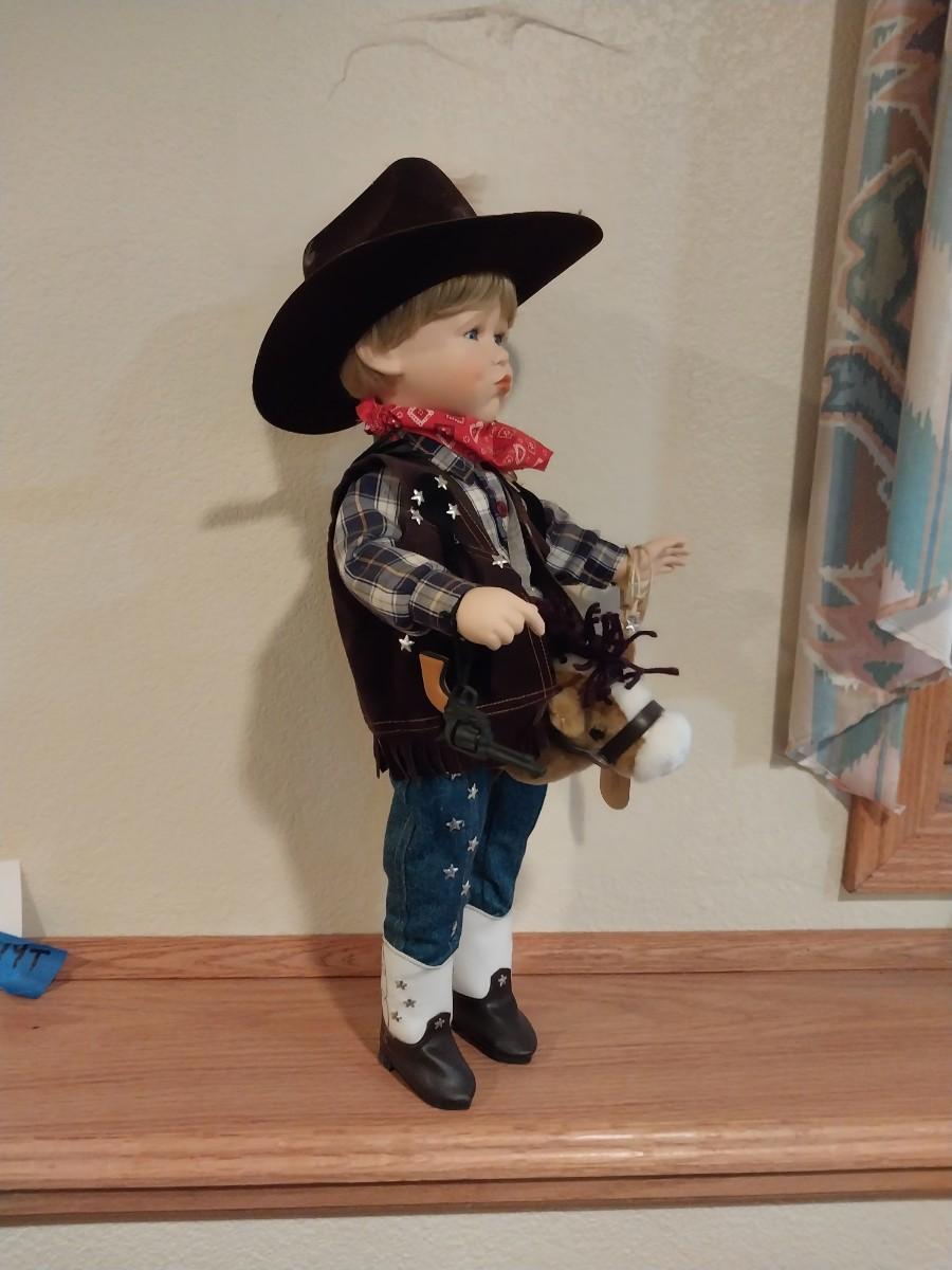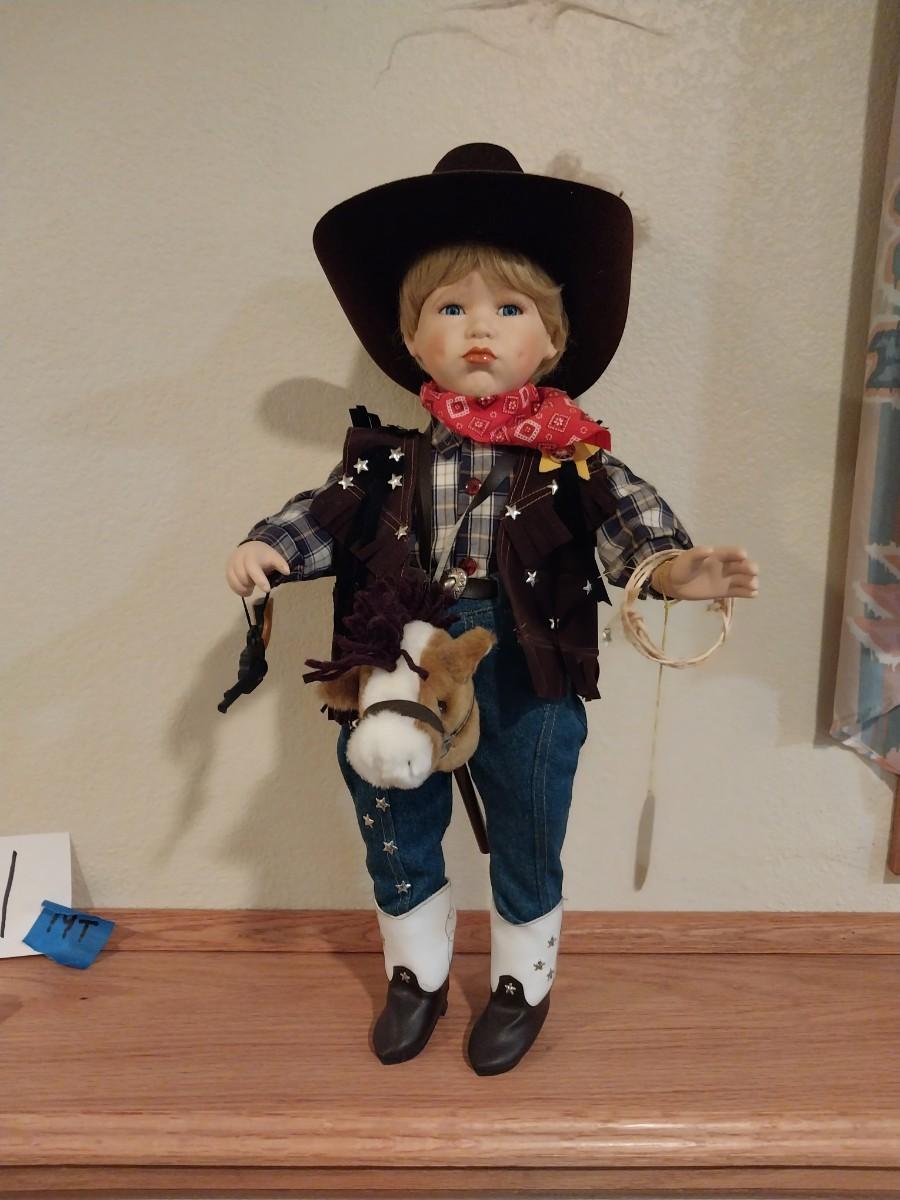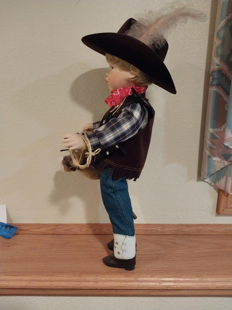 COWBOY COLLECTABLE DOLL ON TOY HORSE