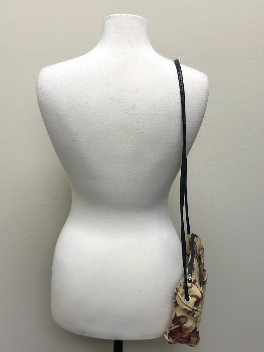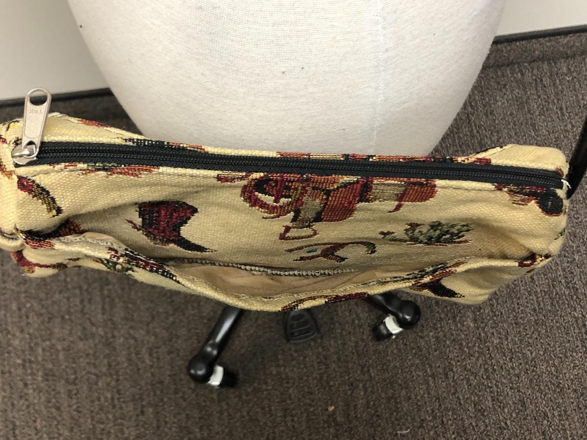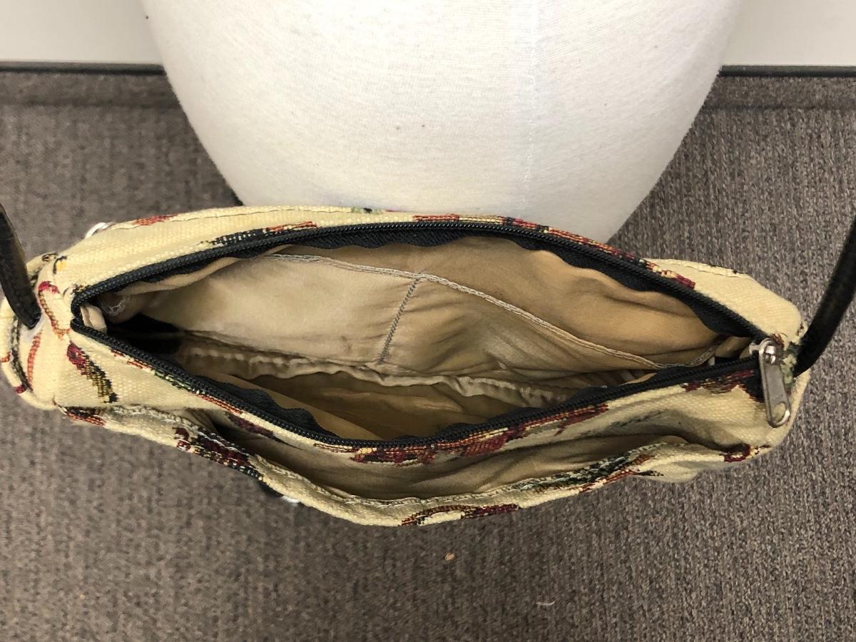 Purse is in good condition. The outside and inside of the bag look a little worn out. This purse has two zippered compartments and many spaces to store items.