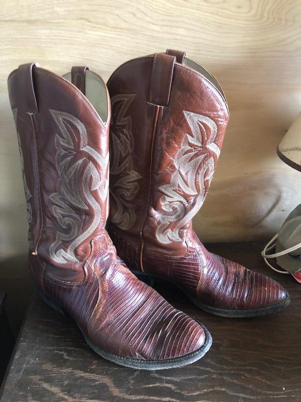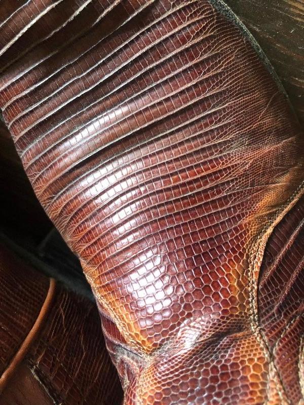 Nice coloring lizard boots retails for very expensive these are great for Decour or to wear because the souls are still good