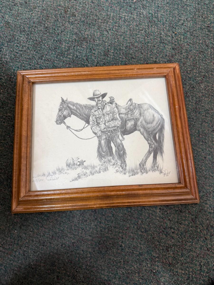 A captivating signed sketch of a cowboy that adds a touch of Western charm to your decor or collection