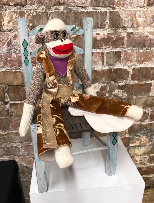 Here is a Cowboy sock monkey with outfit and doll chair as shown...