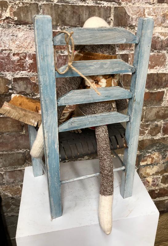 COWBOY SOCK MONKEY DOLL w/ CHAIR