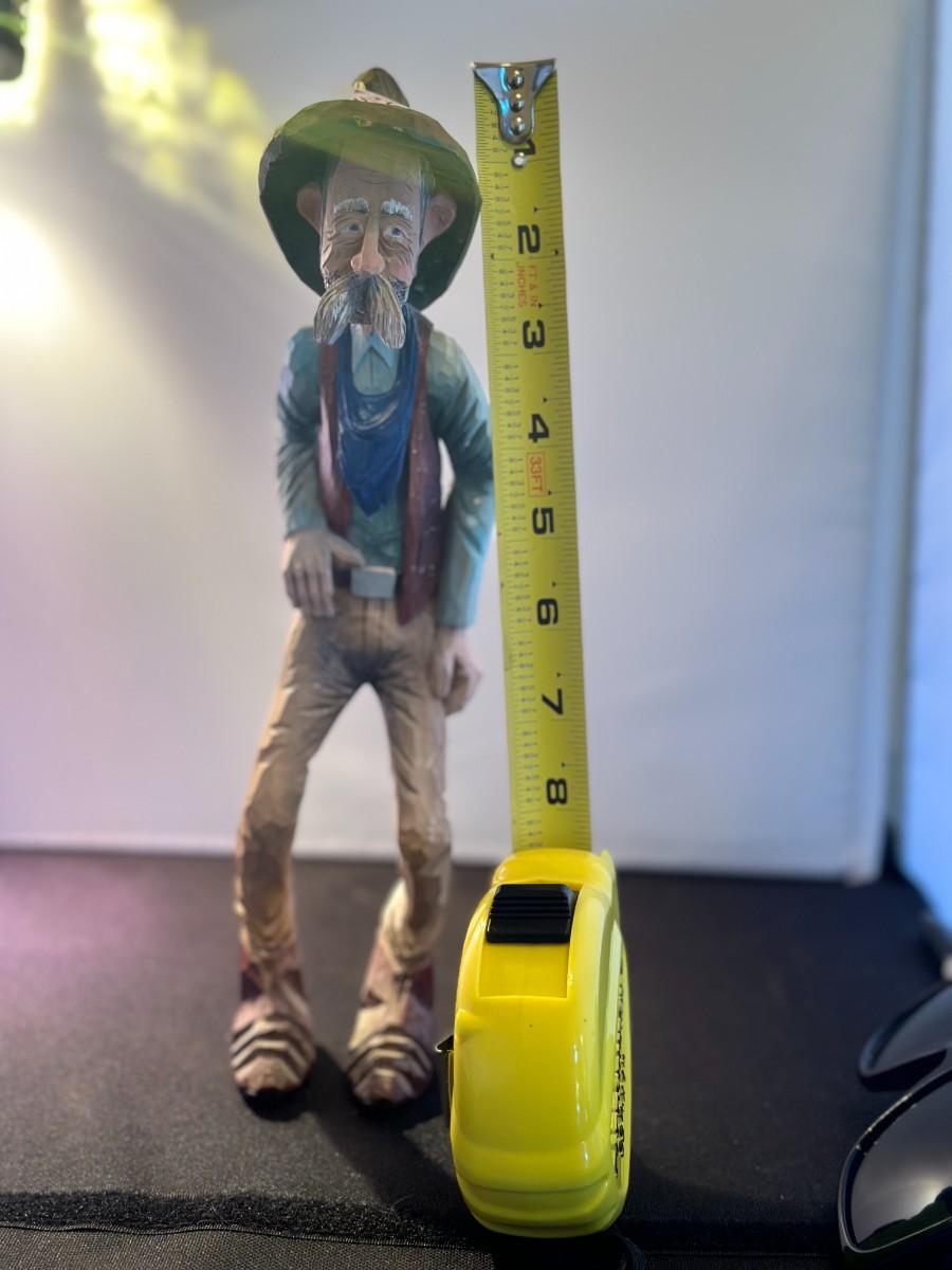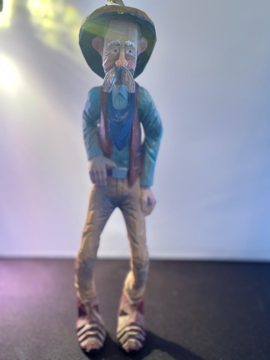 Bring the rugged charm of the Wild West into your home with our intricately carved wood carving of a cowboy. This stunning piece features a skilled artisan's hand-carved depiction of a cowboy in traditional attire, complete with a hat, boots, and lasso. The rich wood grain adds depth and warmth to the carving, making it a striking focal point in any room. Whether you're a fan of Western decor or simply appreciate fine craftsmanship, this wood carving of a cowboy is sure to capture your imagination and add a touch of rustic elegance to your space. Display it on a mantle, shelf, or desk to bring a piece of Americana into your home. Shop now and bring a touch of the frontier into your living space.