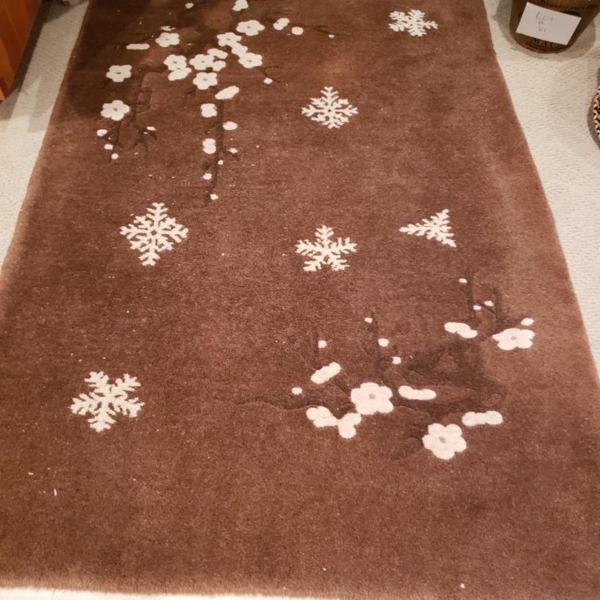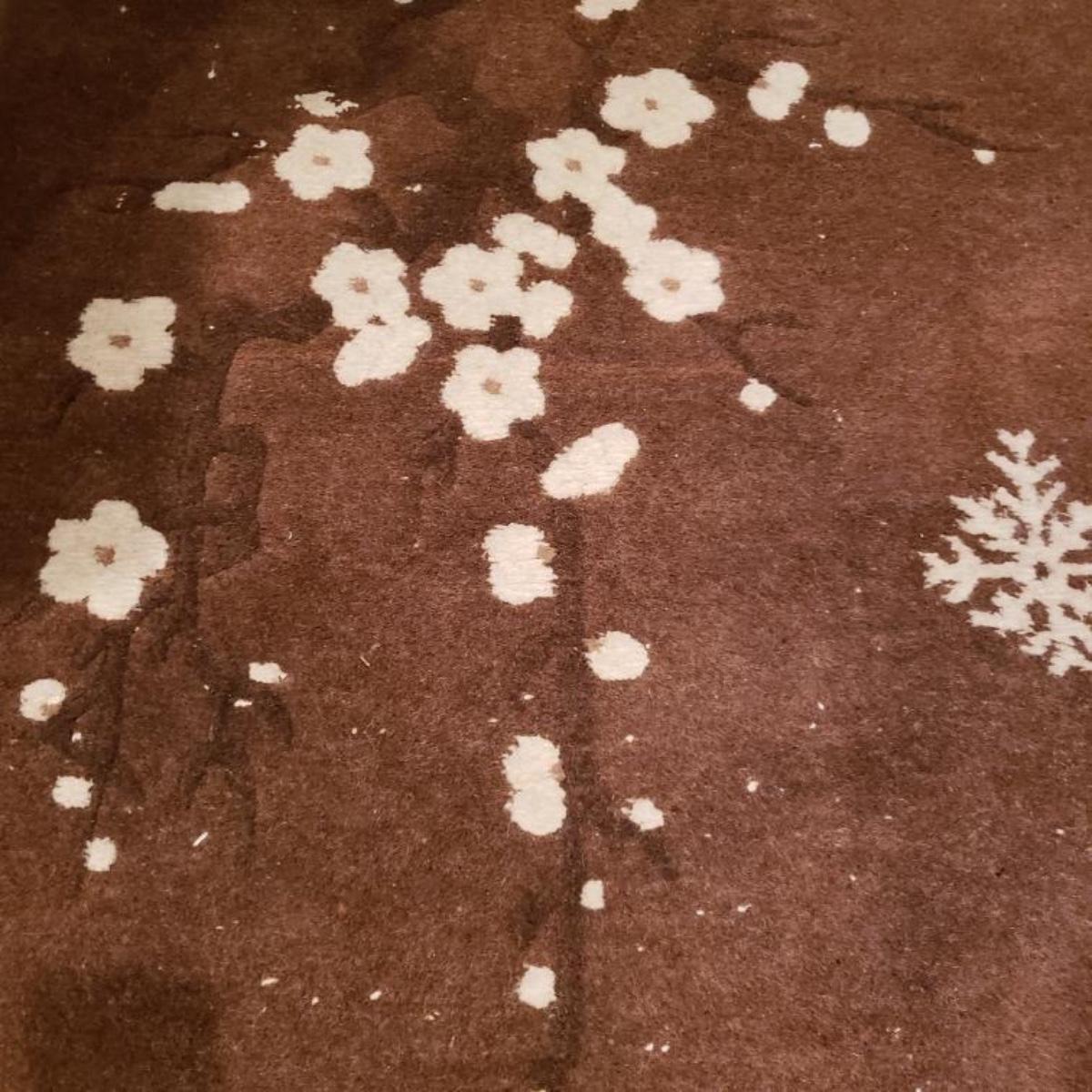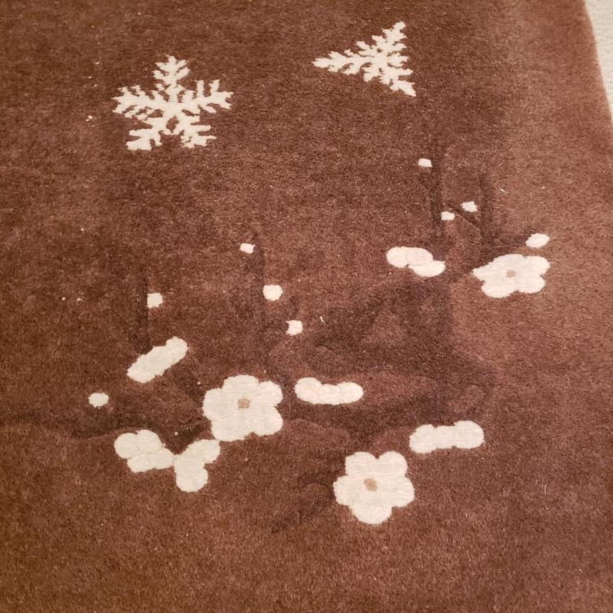 Asian wool rug with cherry blossoms and snowflakes.