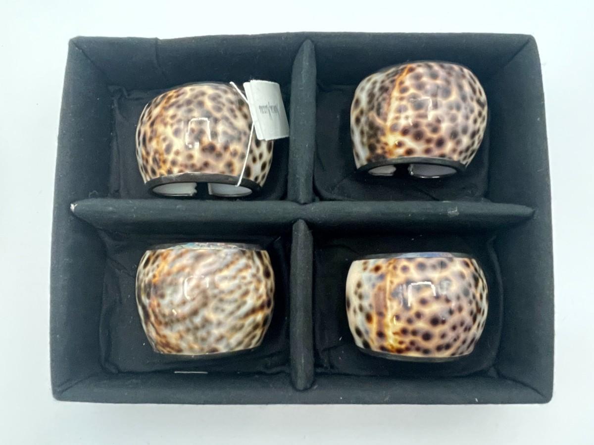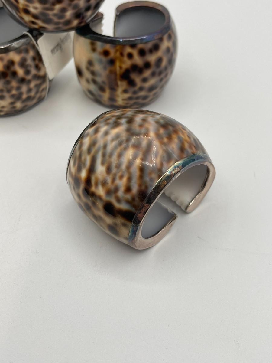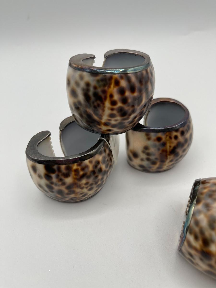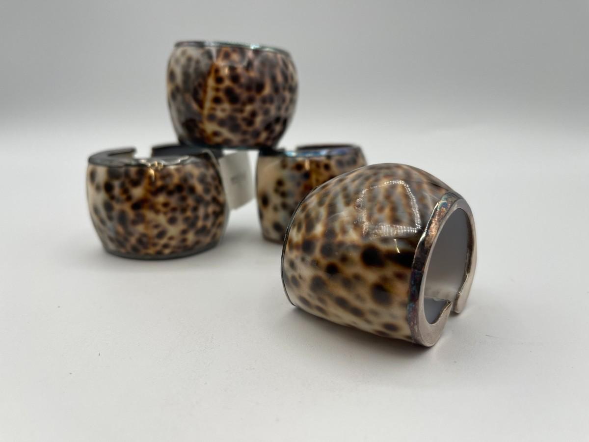We see a lot of nautical items that say beach house. These Cowrie Shell napkin rings Will pair beautifully with dishware in similar colors. Also, if you like leopard in your design scheme -- these certainly do the trick. Each shell napkin ring is bordered with sterling silver. #740