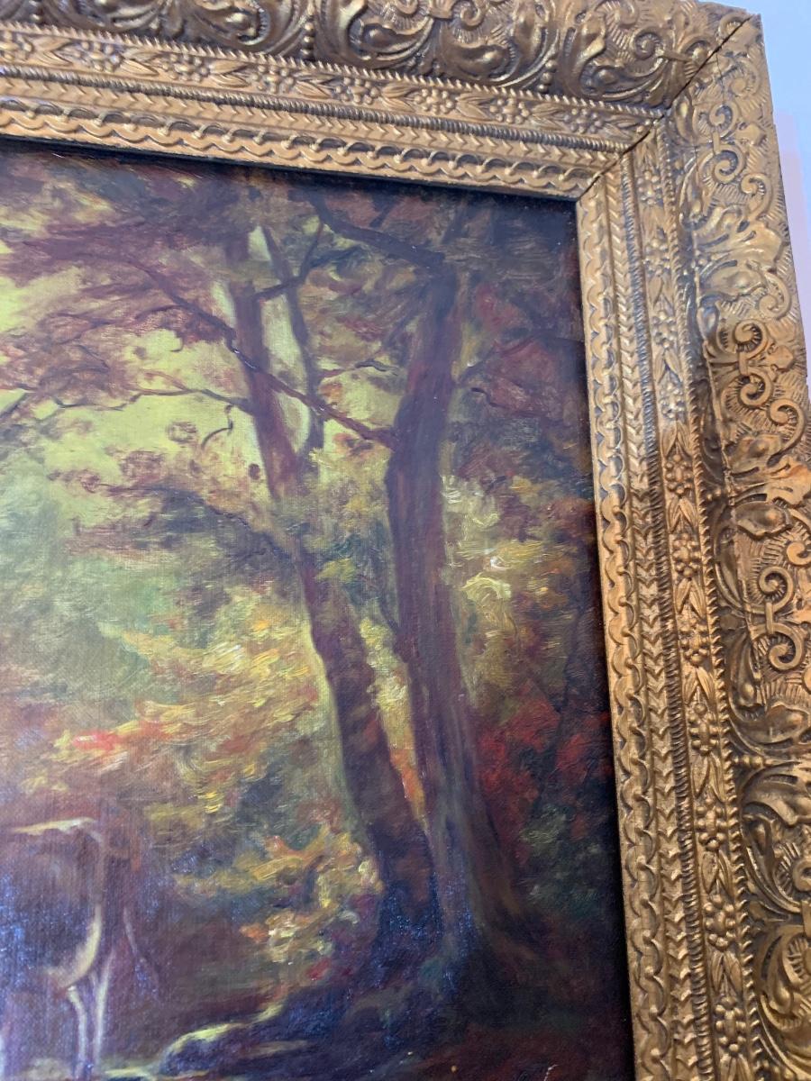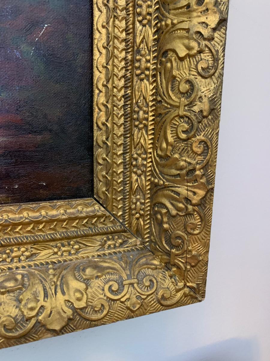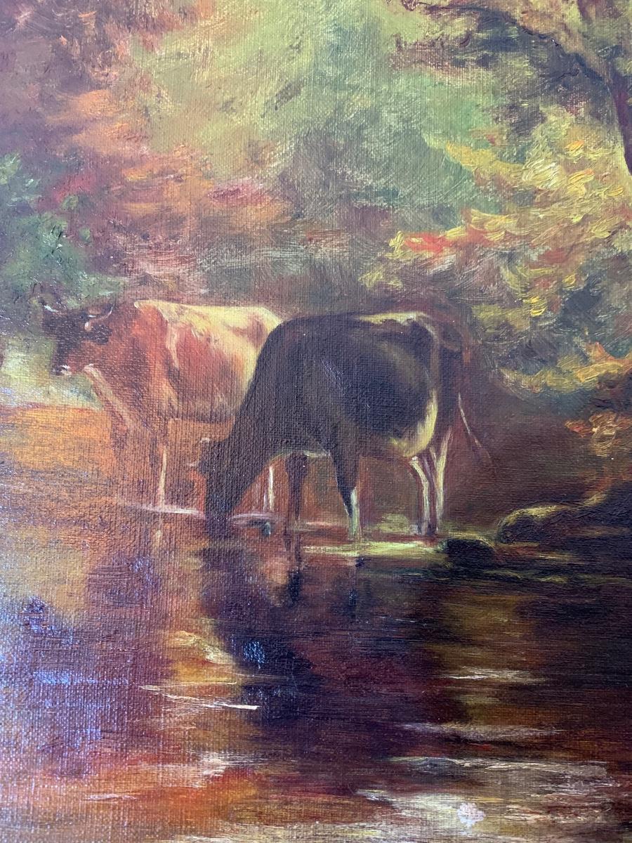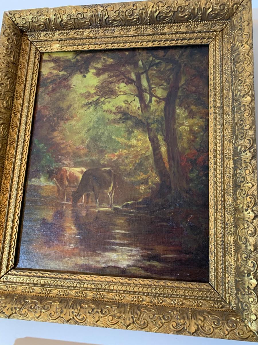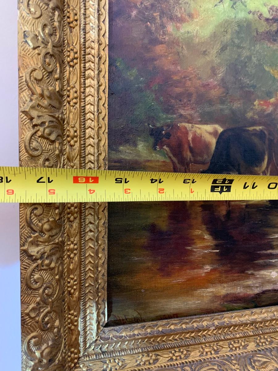 Cows In Stream Oil In Canvas Gold Gilt Frame