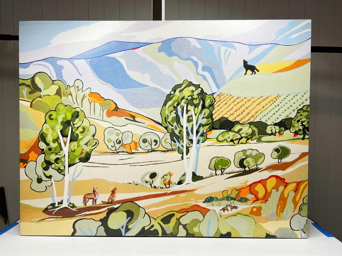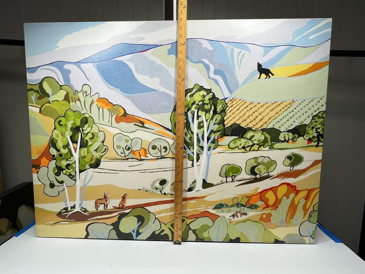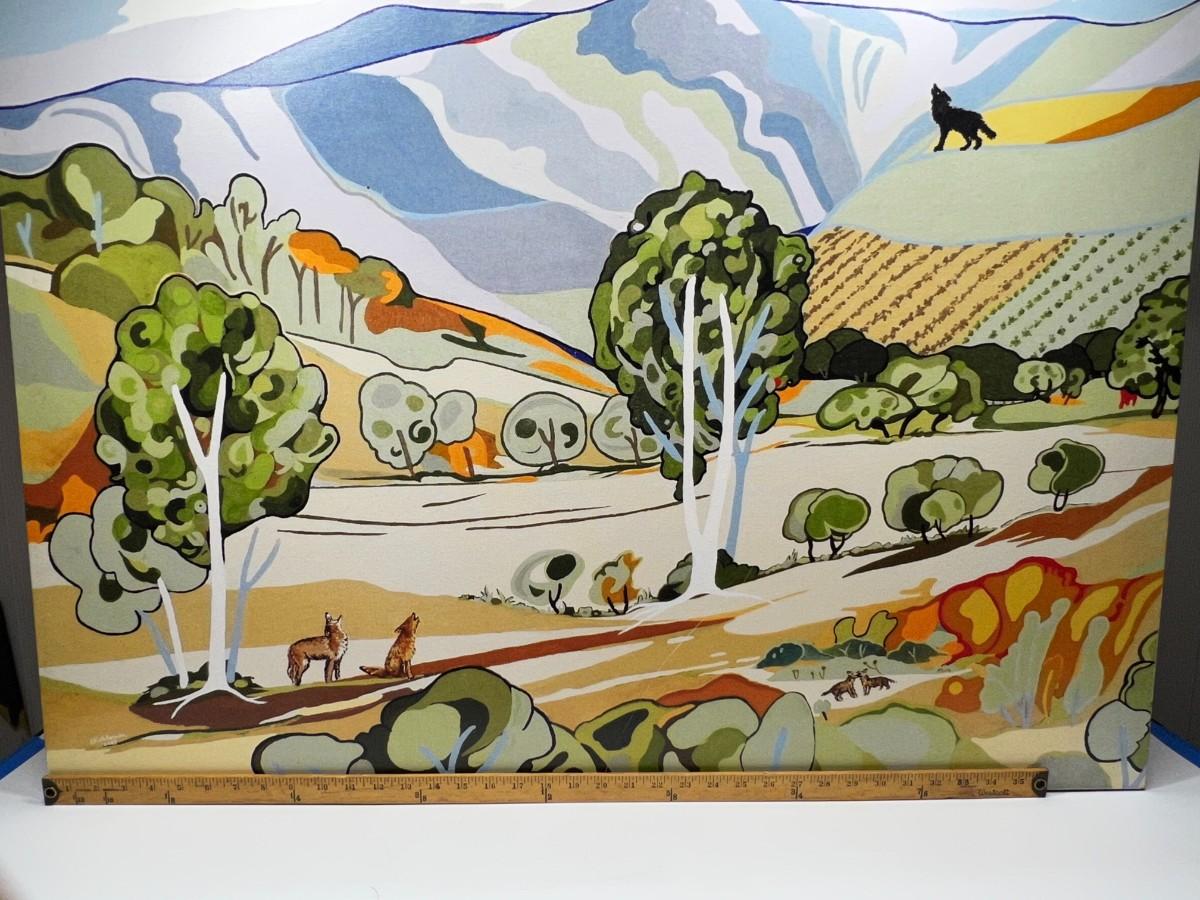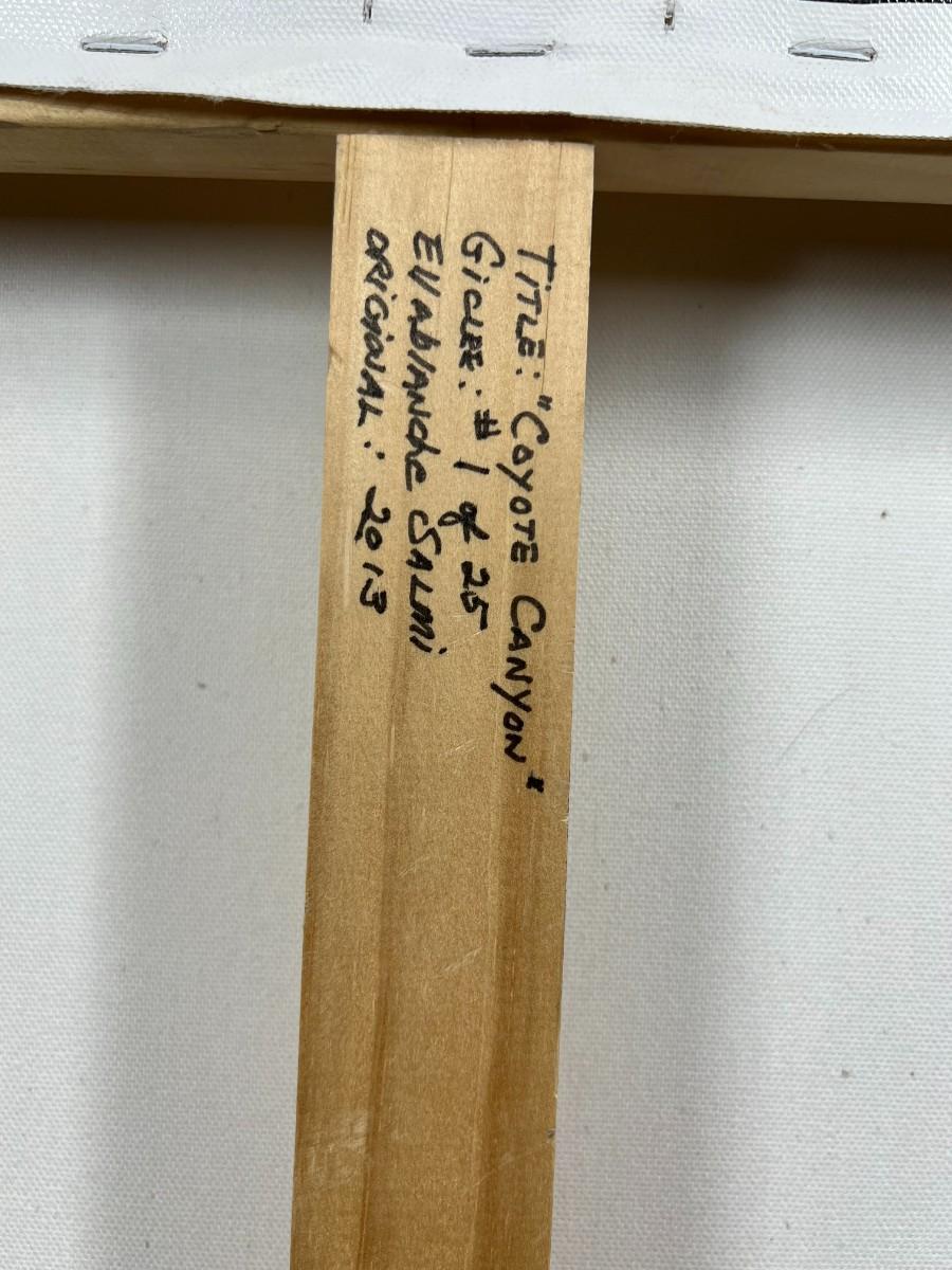 Coyote Canyon by Ellablande Salmi. Gilcee #1 of 25. Large 40"x30" size. There is a fine line scratch on artwork, but in otherwise good condition.