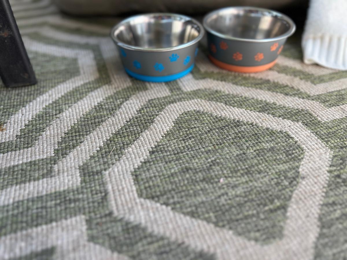 LARGE DOG BED, BLANKETS AND FEEDING/WATERING DISHES