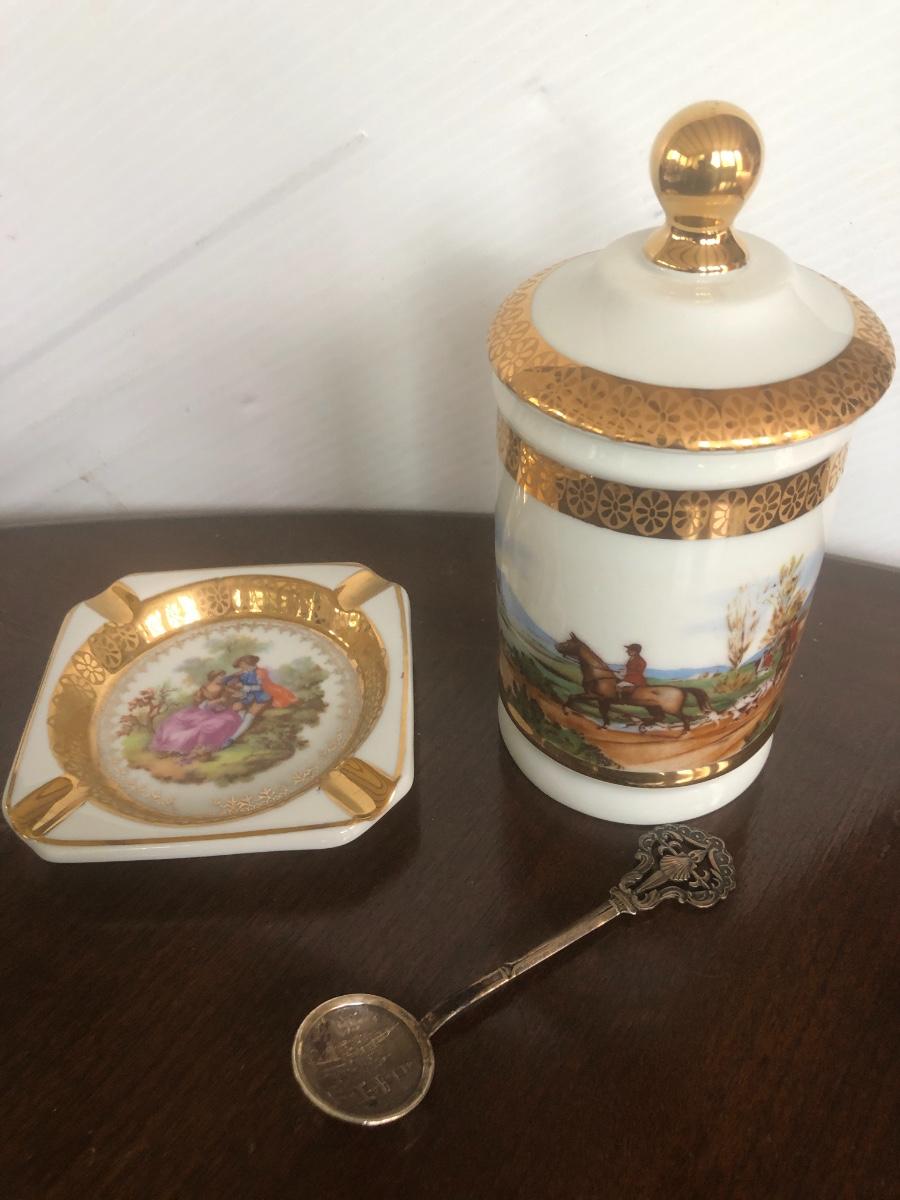 C.P. Limoges Ashtray & Jar w/Lid plus Travel Spoon -Lot 208