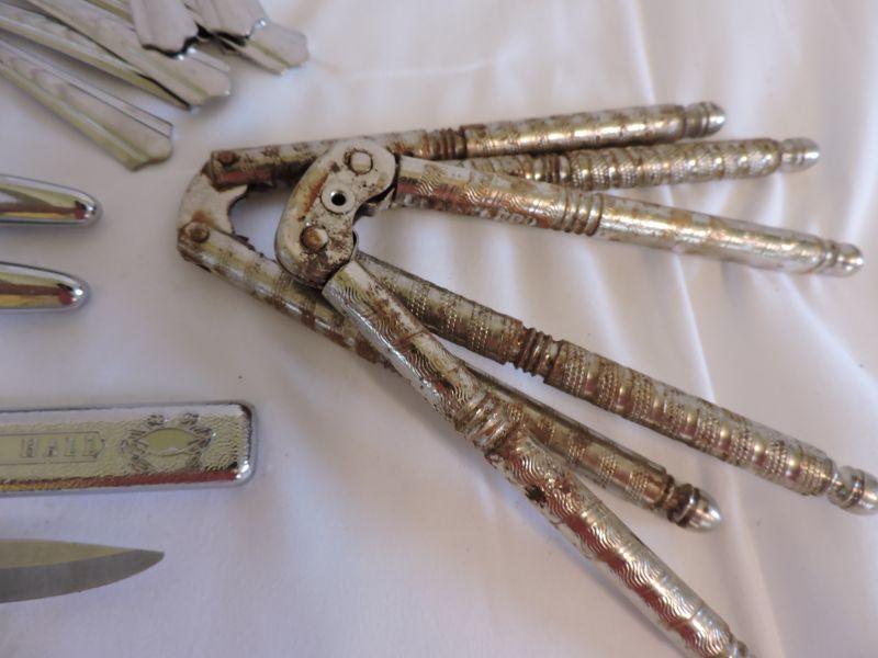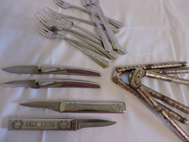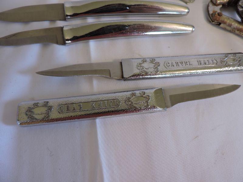Carvel Hall crab knives, stainless forks, and shell crackers. **Please read Terms and Conditions before placing a bid. Pick up is Saturday, November 30 from 9am to 3pm in Bridgeton, NJ. All sales are final. All sales are as is, where is. Please review all photos. Any props included in photos are not included in listing. All measurements are approximate.
