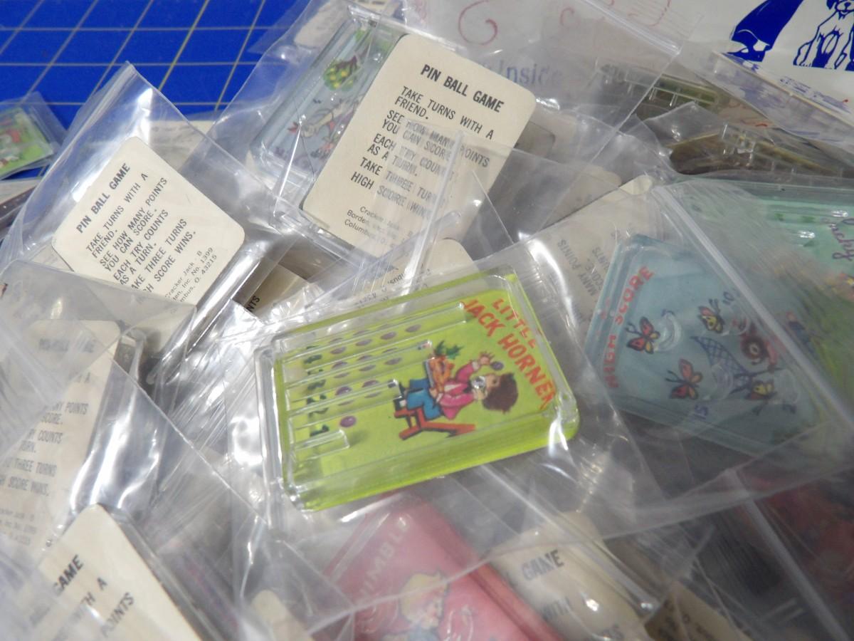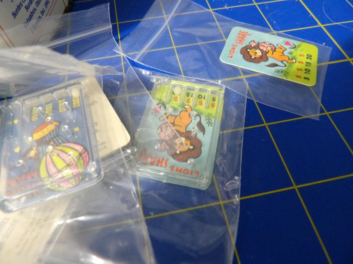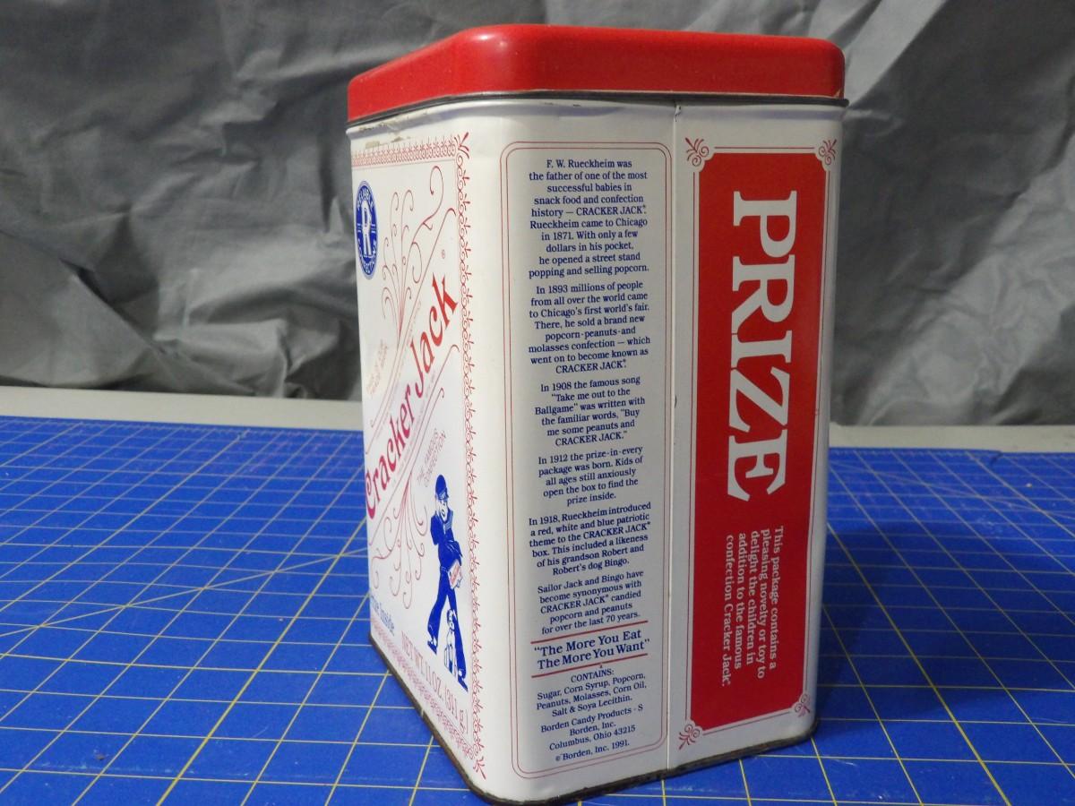100 1960's cracker jack prizes in a 1990's cracker jack tin. All prizes are individually bagged for easy resale