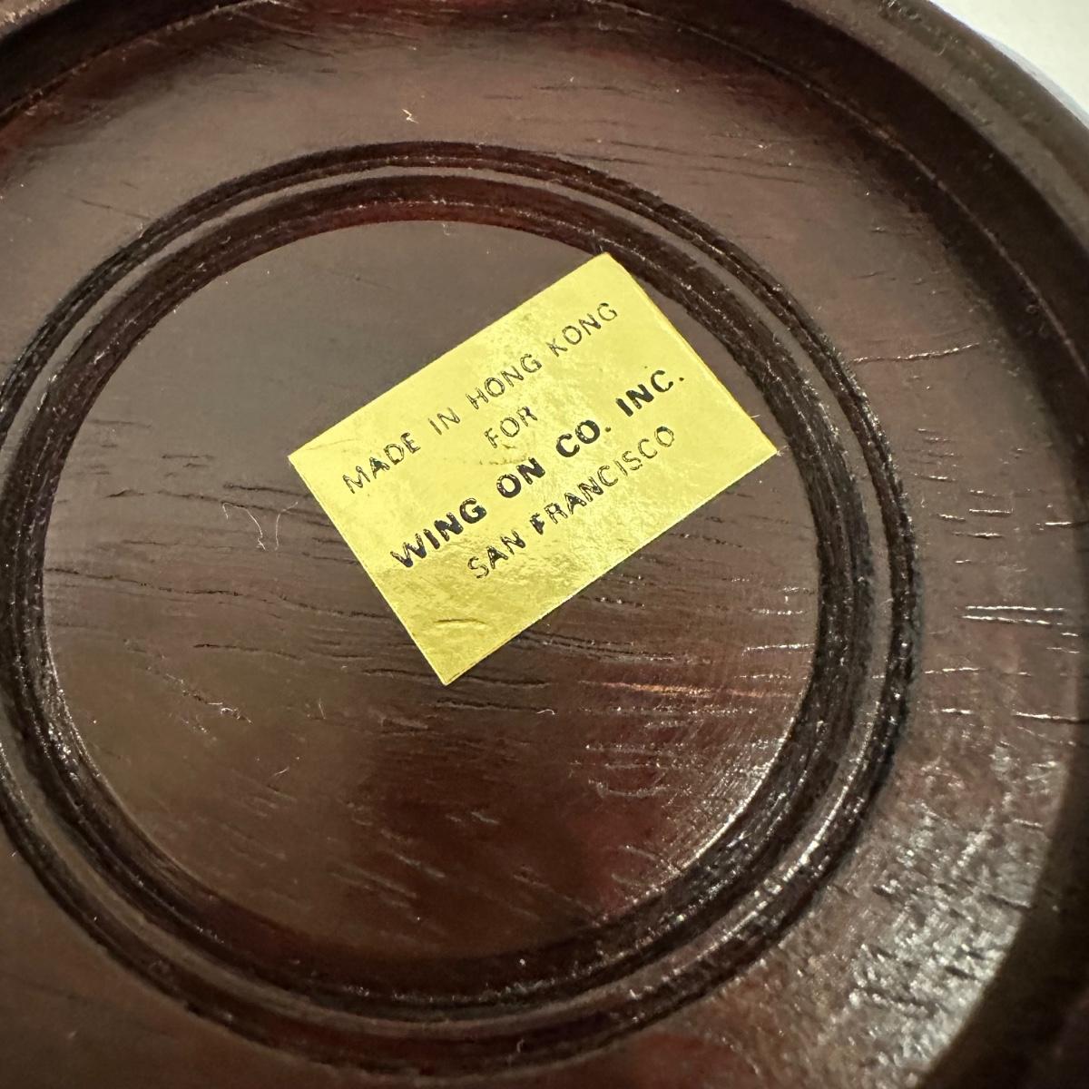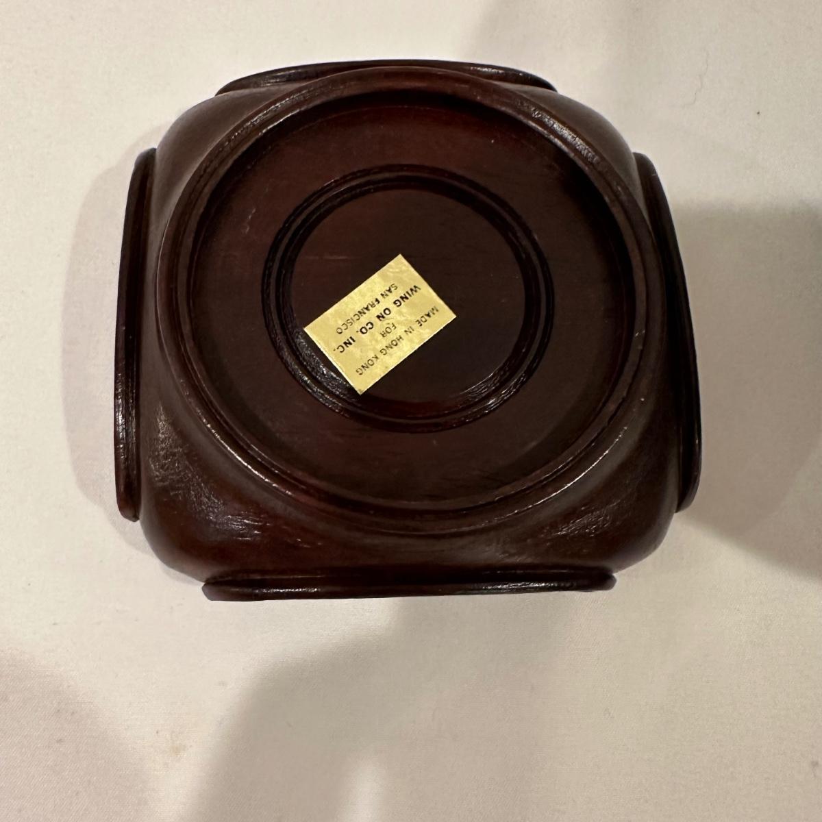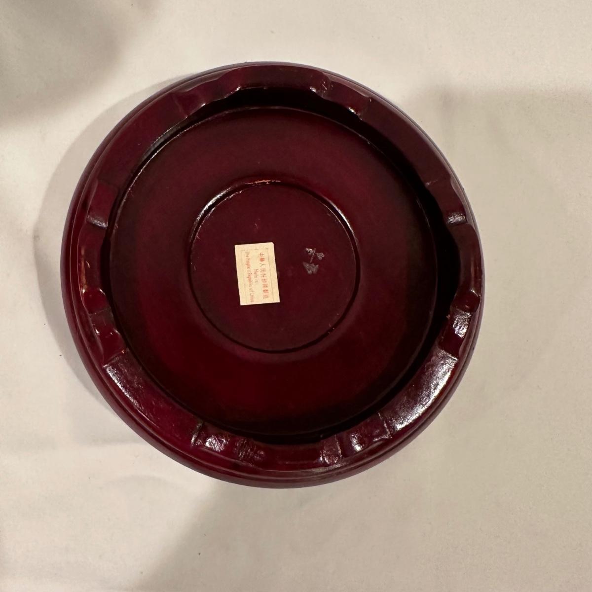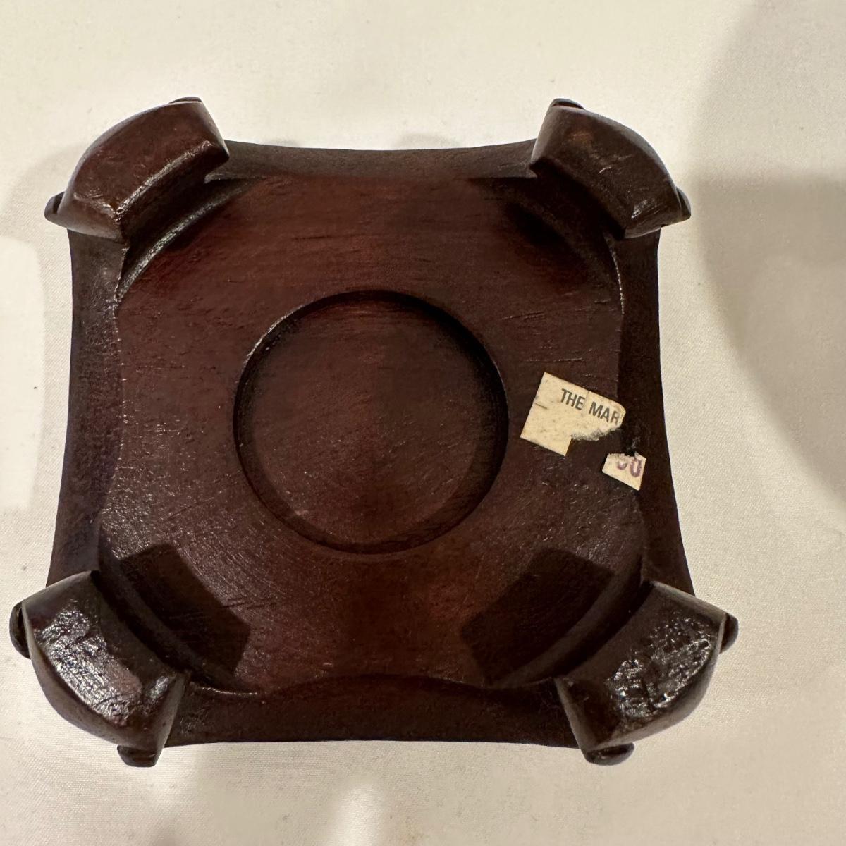 Three vases with wooden stands that appear to be porcelain with crackle celadon glaze with a flying crane design. Includes small apple with lid. Tallest vase is 12”H with wooden stand. Stand measures is 6.5”D. Shortest vase is 6.5”H with stand. Stand measures 3.5”D. Apple is 3”H x 2.5”D. Shipping available.