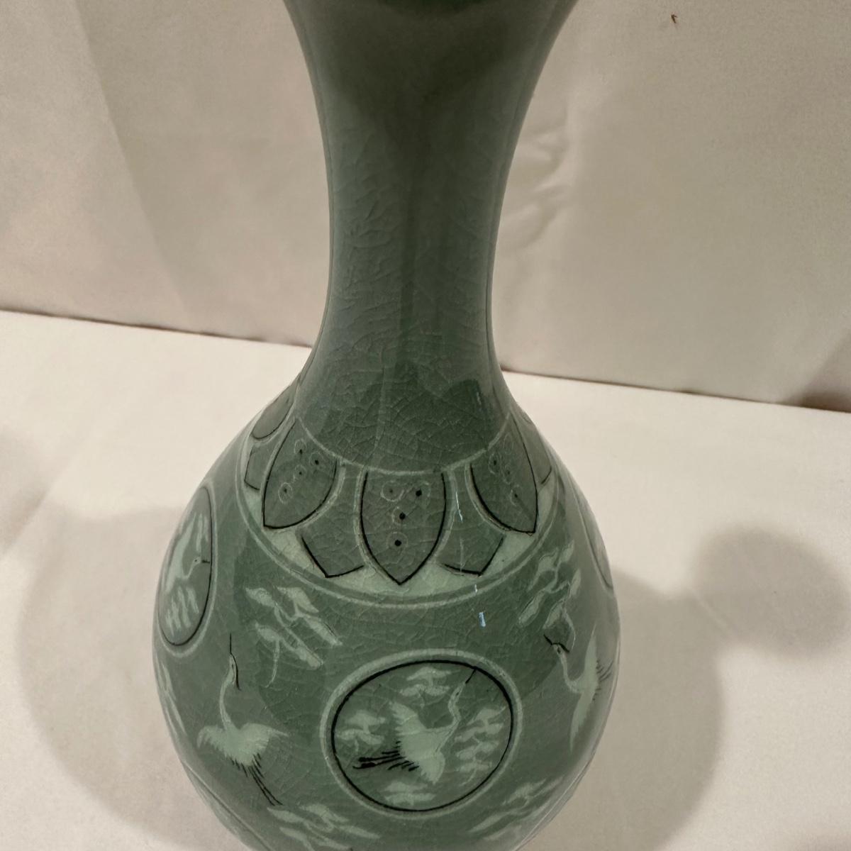 Crackle Celadon Vases with Flying Crane Design (SR-KL)
