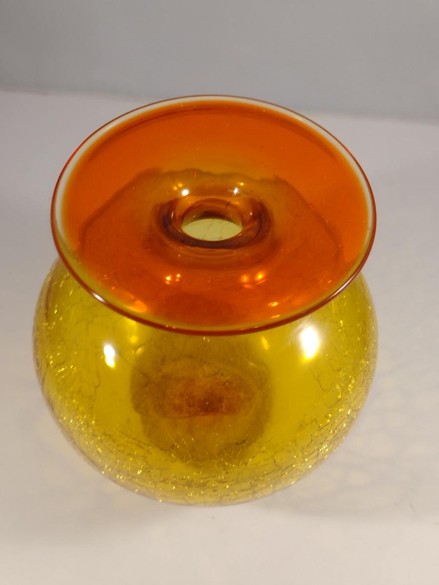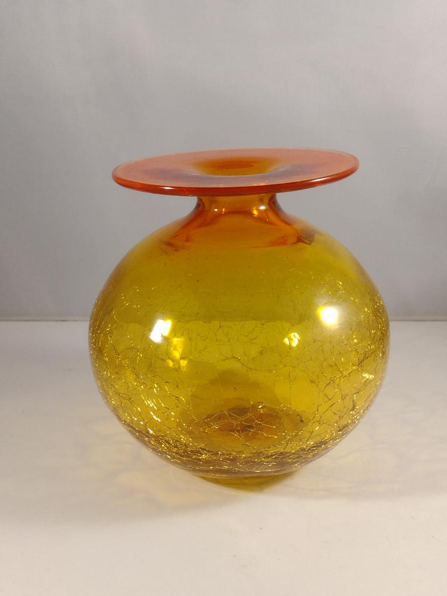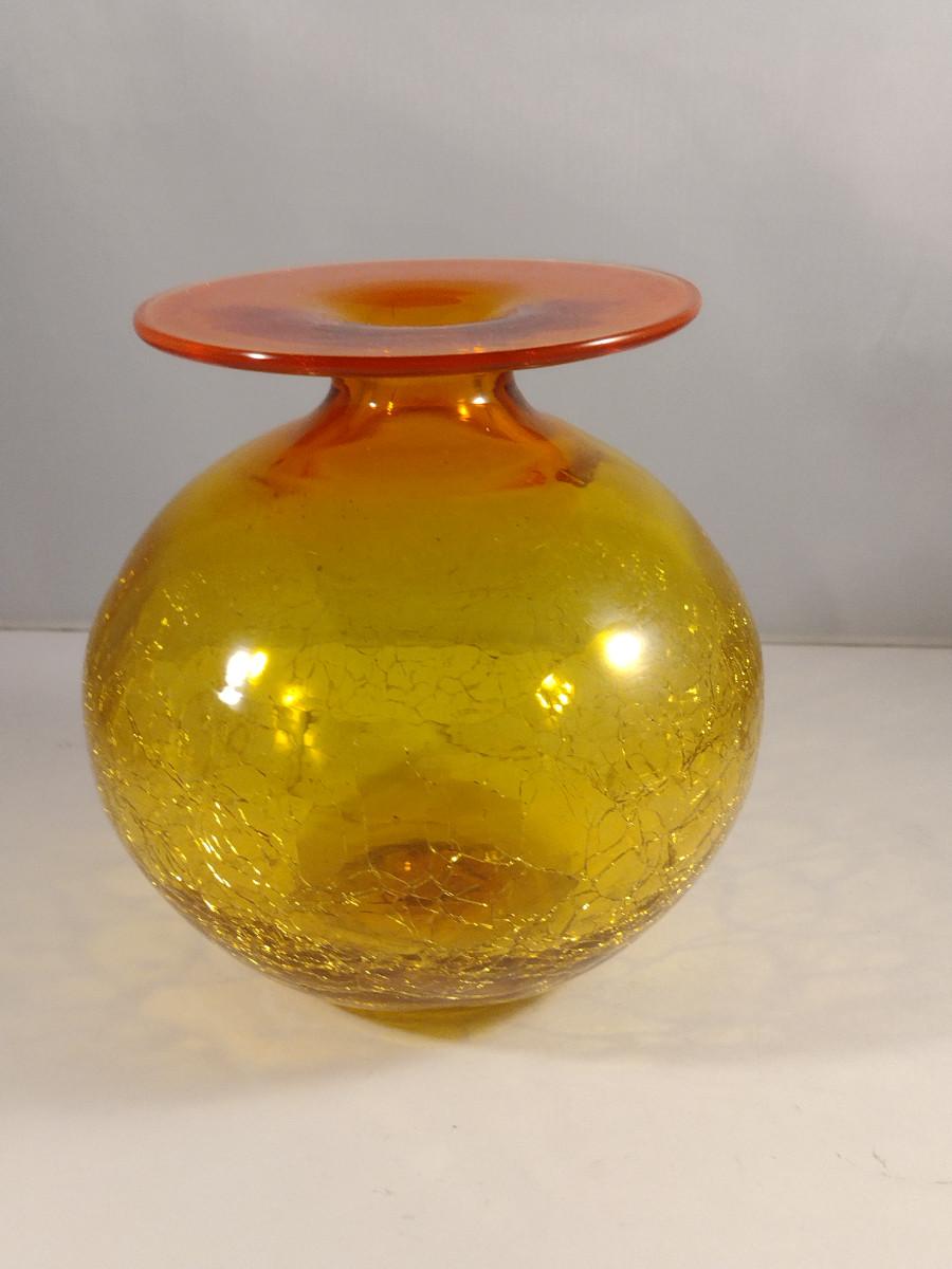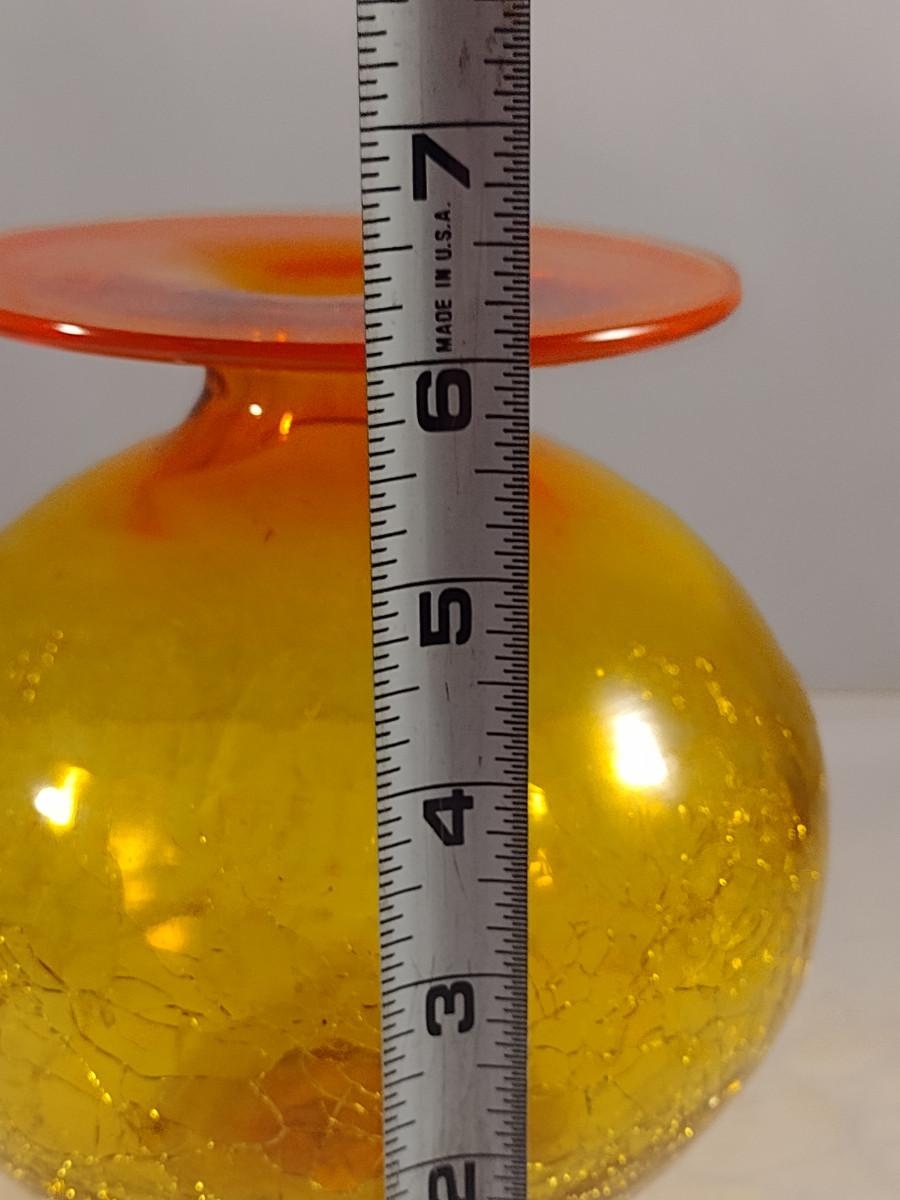 Crackle Finish Art Glass Vase. Approx 6" tall.