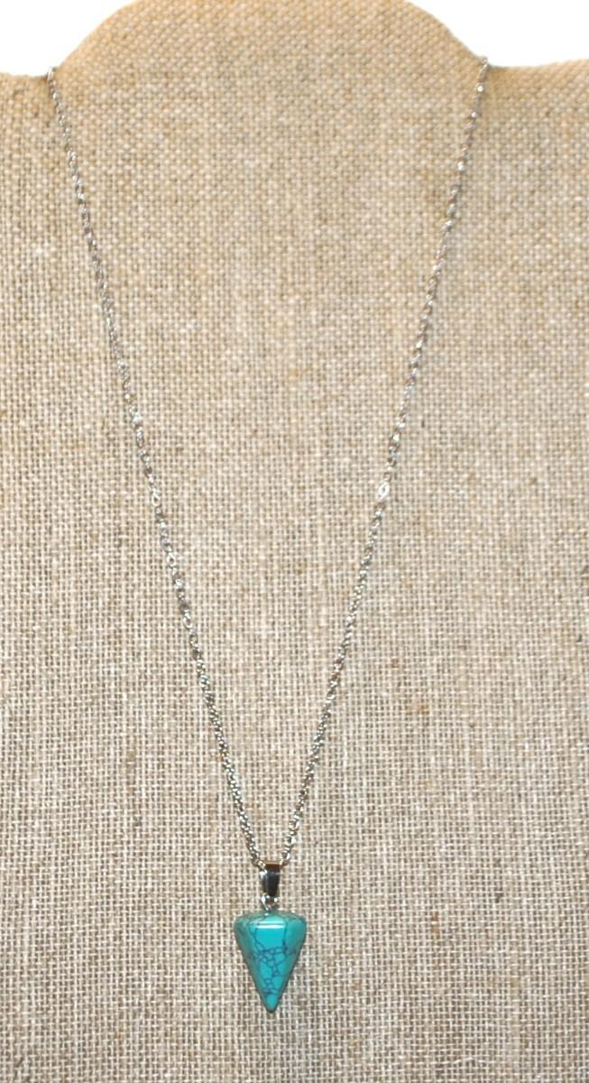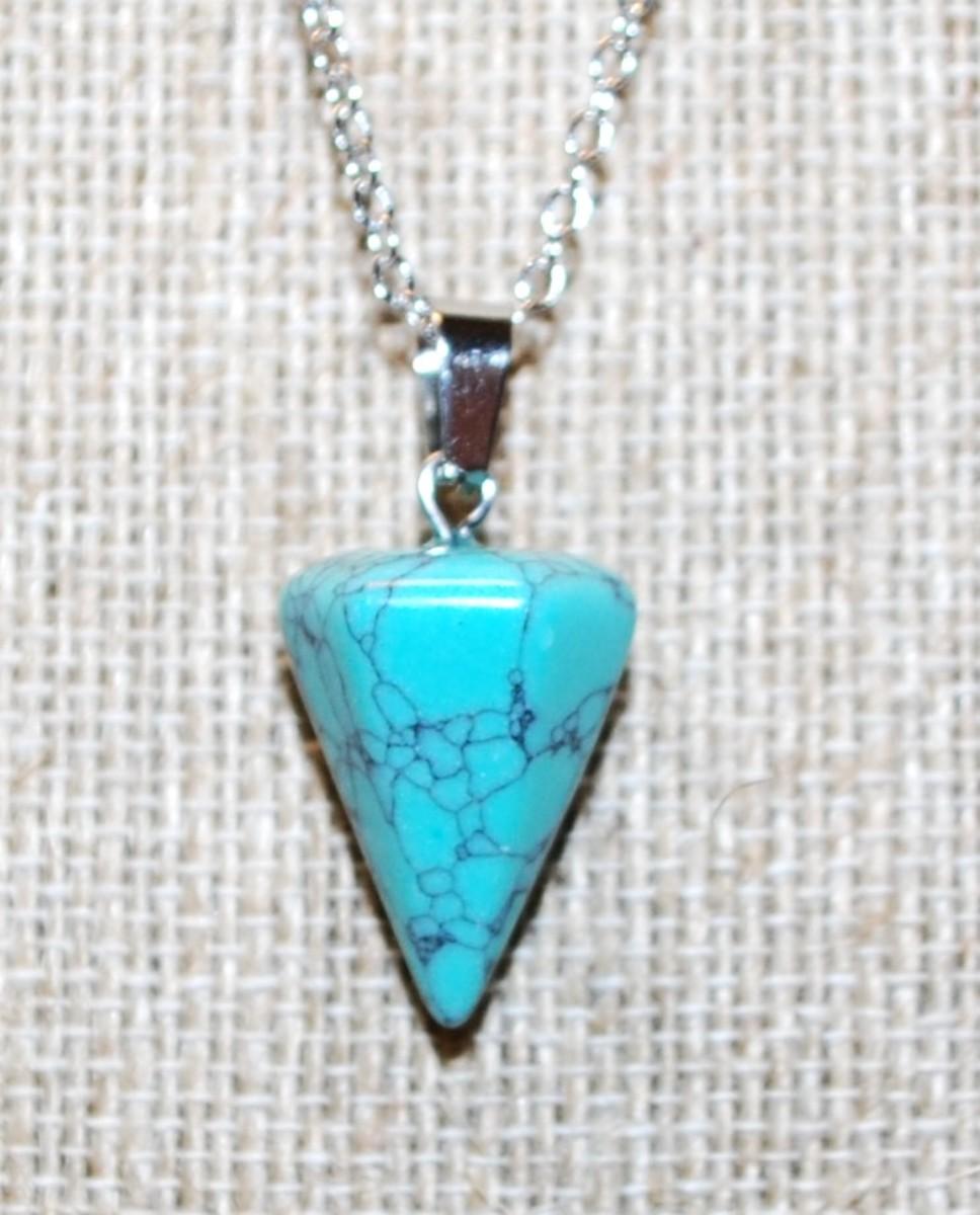 Crackled Jade Style Prism Cone PENDANT (1½" x ¾") on a Silver Tone Necklace Chain 18" L