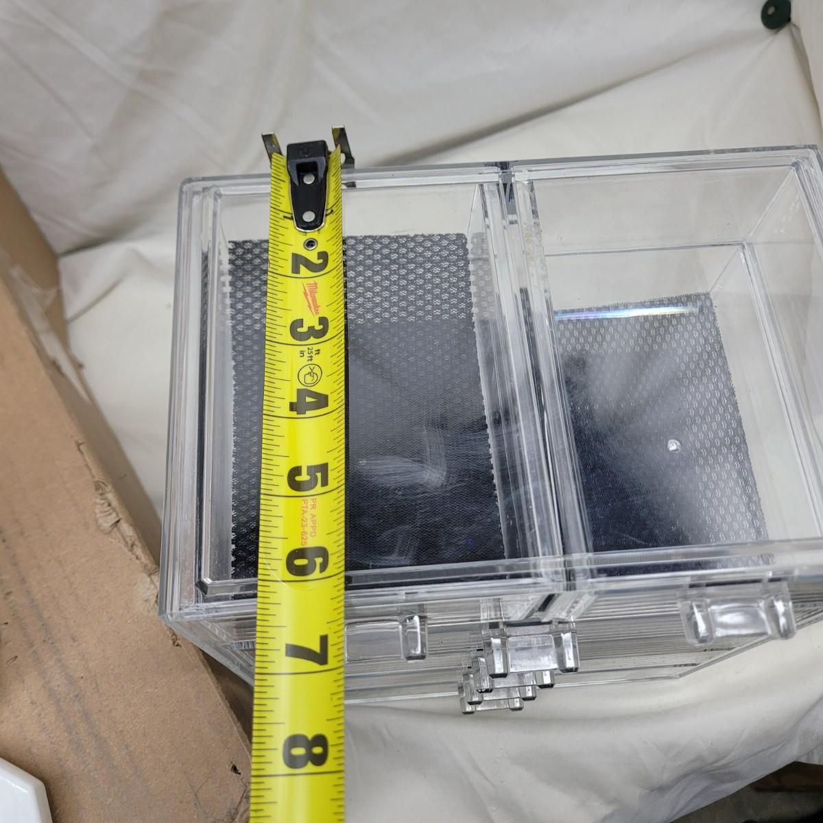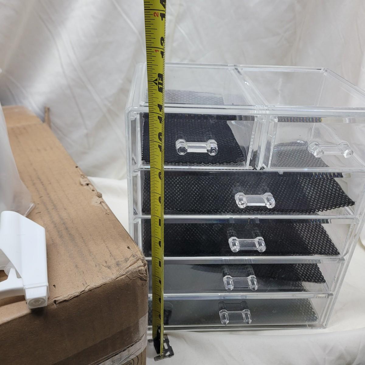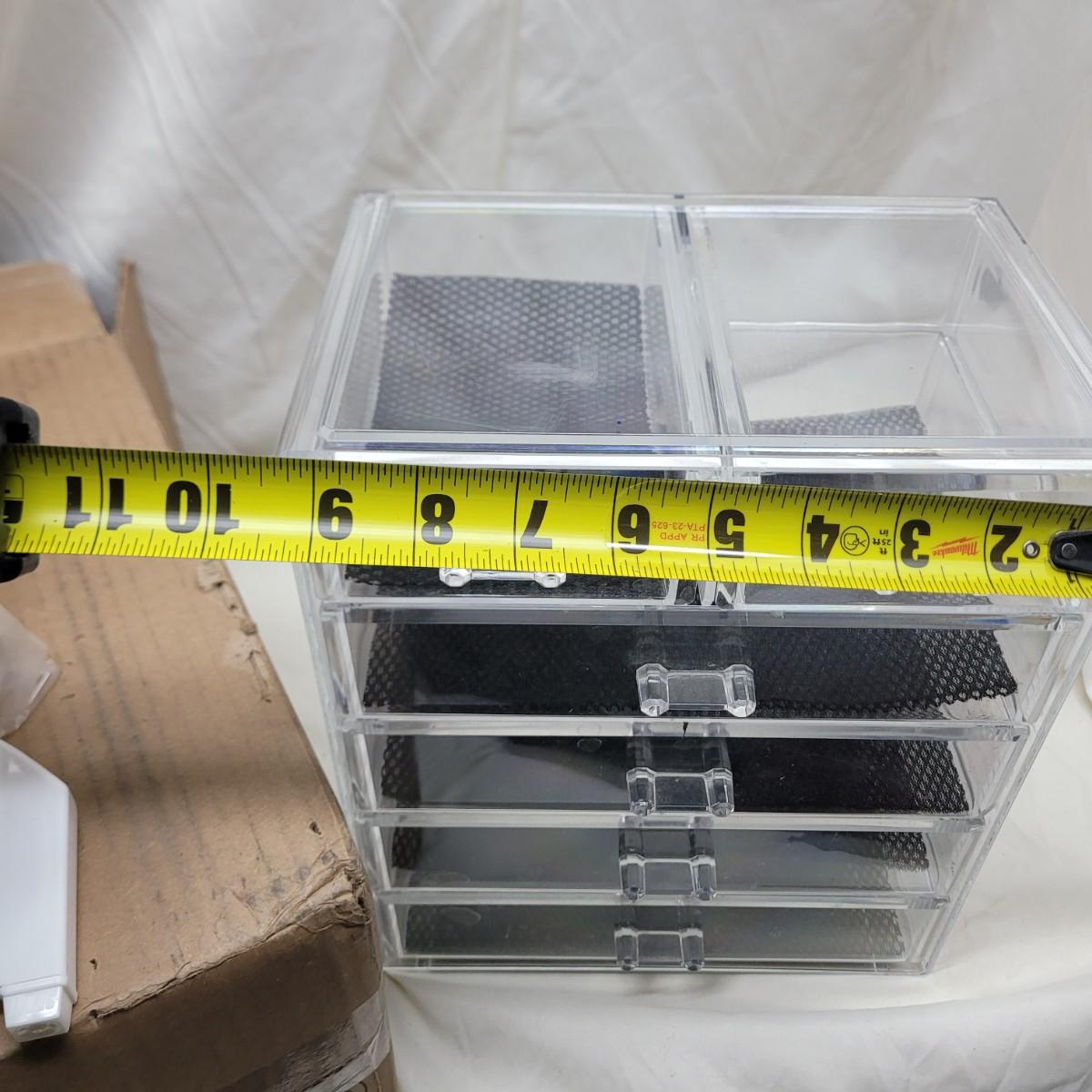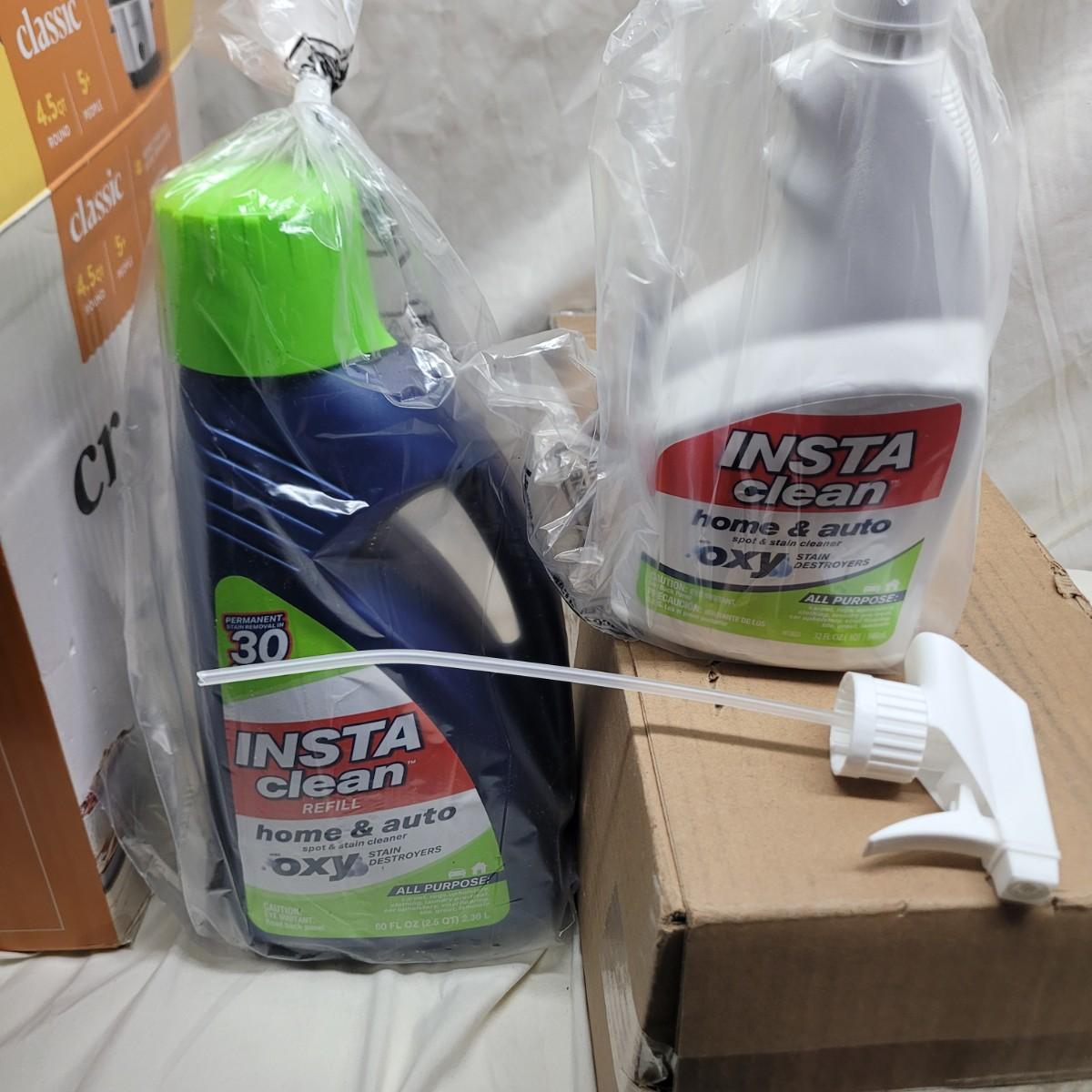 Crockpot is used, carpet cleaning chemicals were still boxed and no cracks in plastic storage drawers assembly