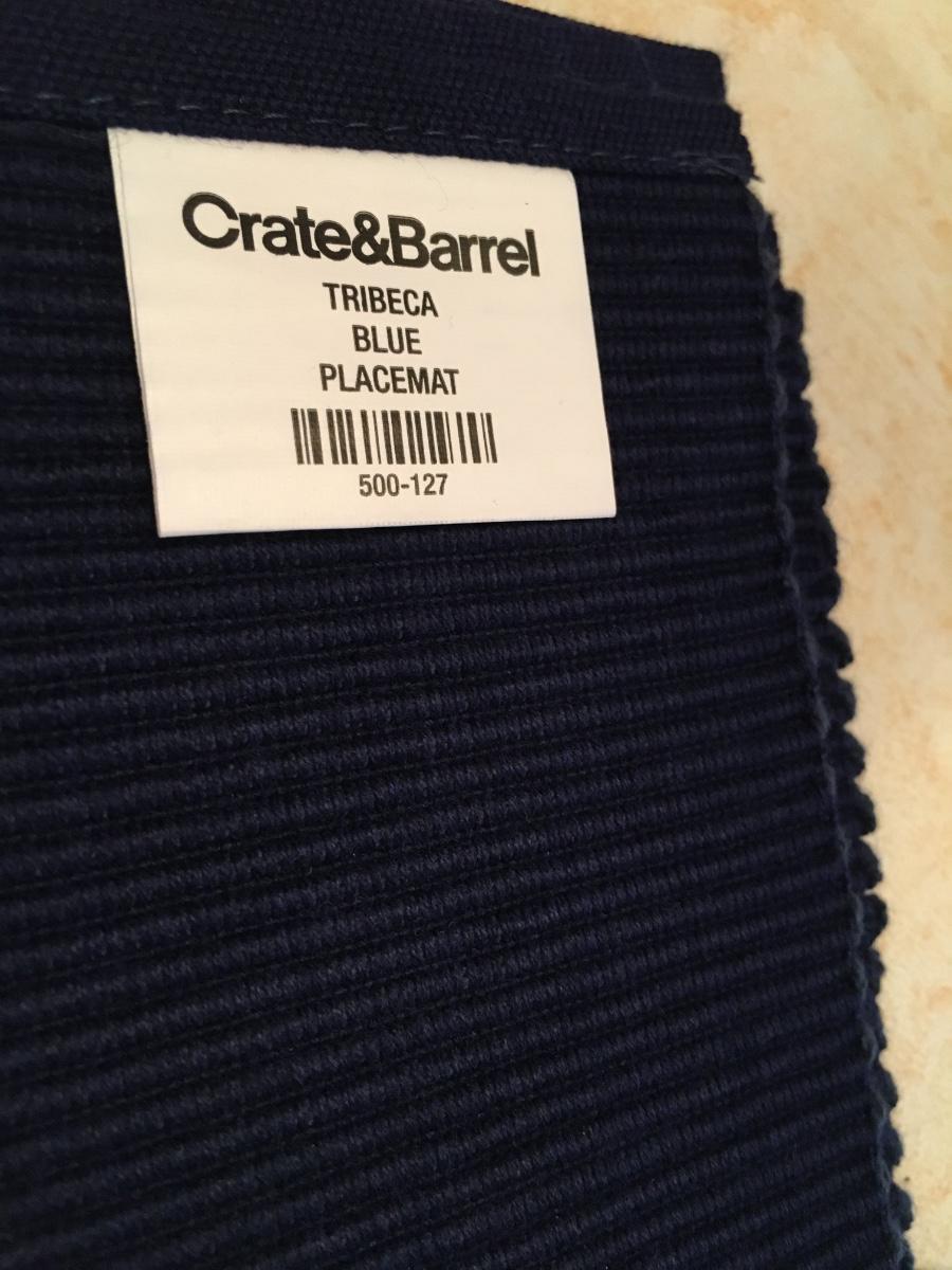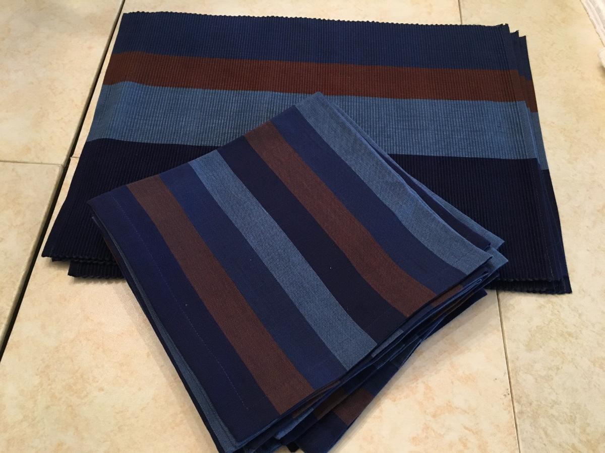 Set of 6 cotton ribbed placemats and 6 striped napkins from Crate and Barrel. Like new condition.