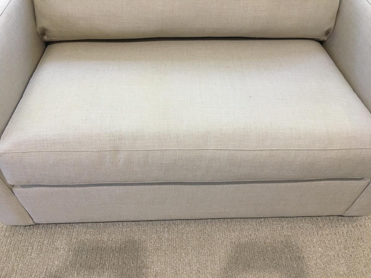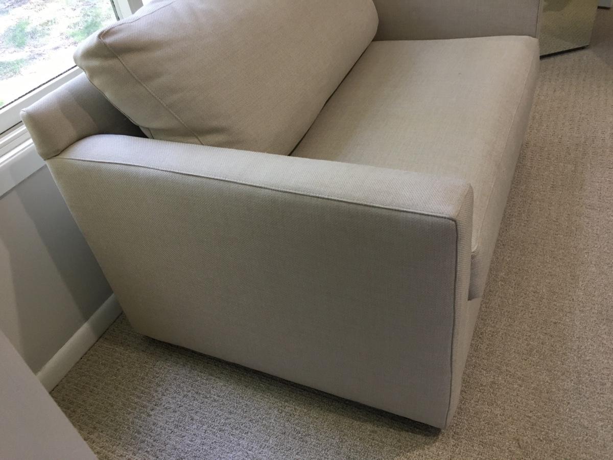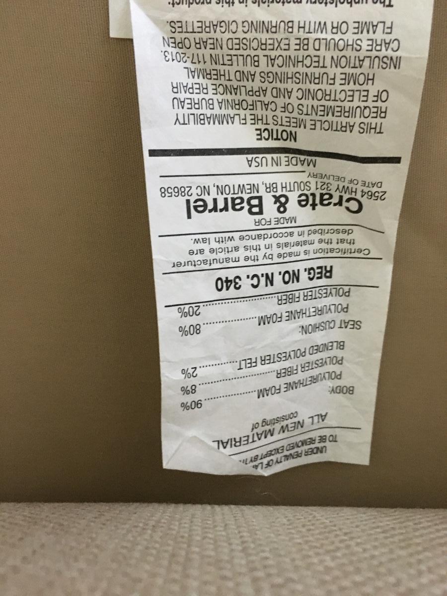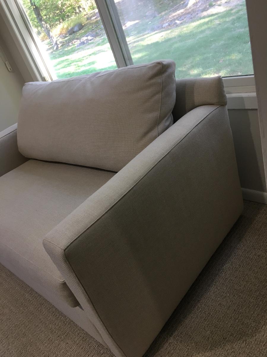 Like new condition. VEry compfortable with removable cushions. Fiber content and measurements in photos