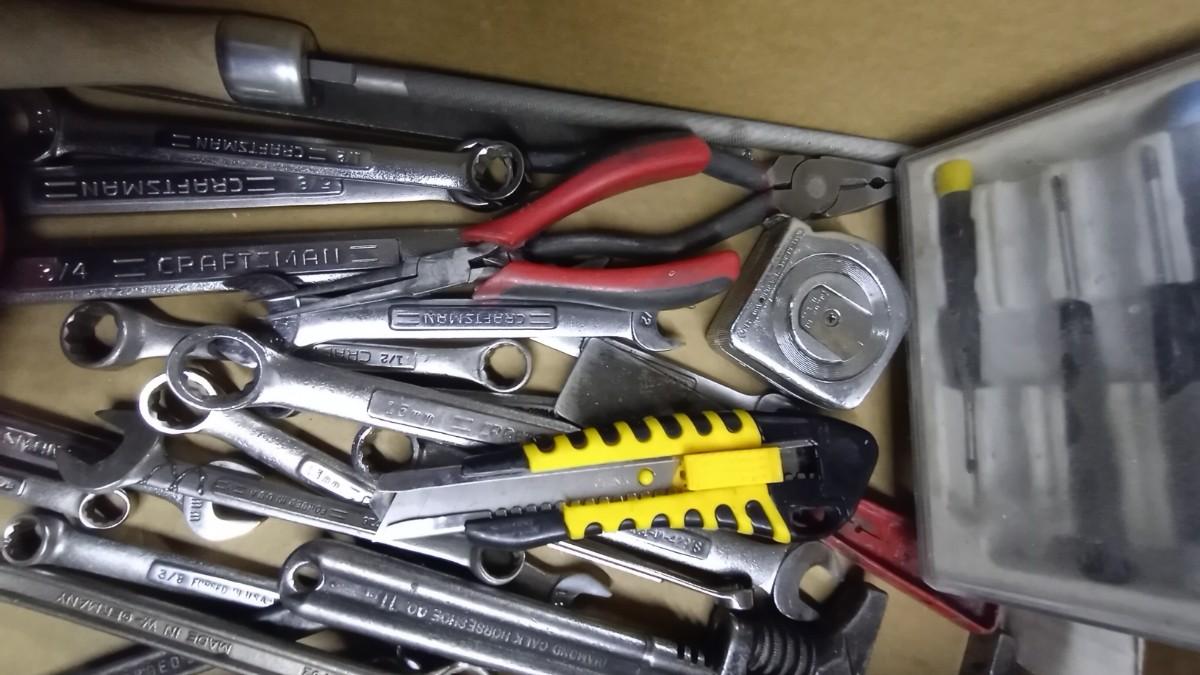 NICE SELECTION OF CRAFTSMAN WRENCHS- FILE-BOX KNIFE-WIRE CUTTERS AND MORE