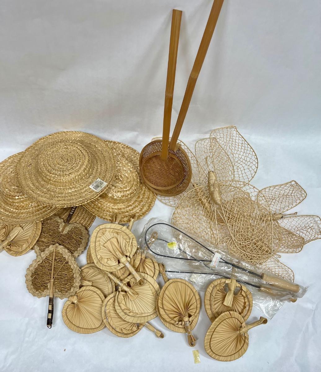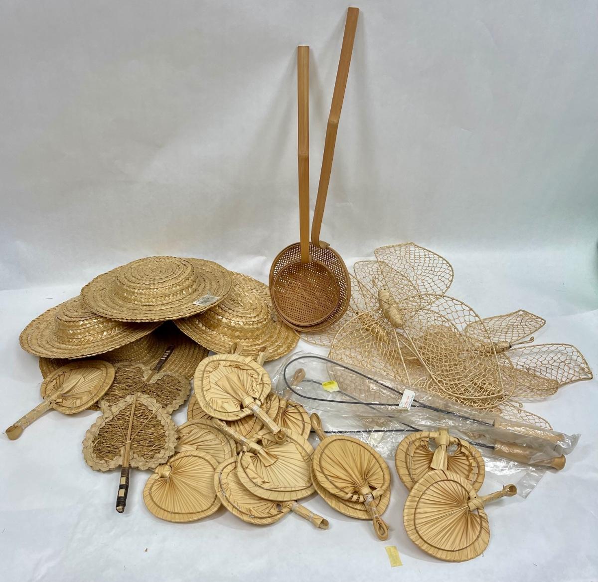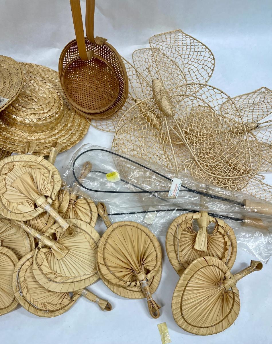 Craft Supply lot #2 - straw hats, fans, butterflies, etc