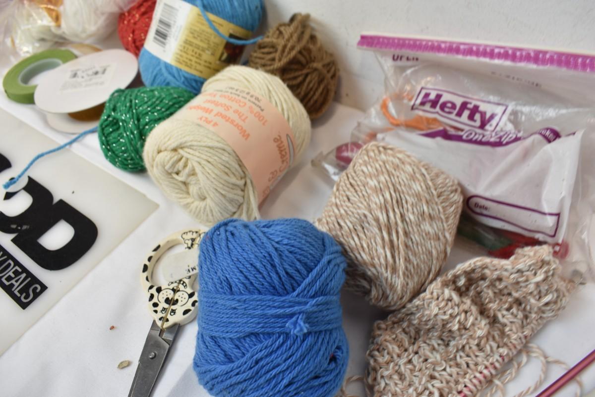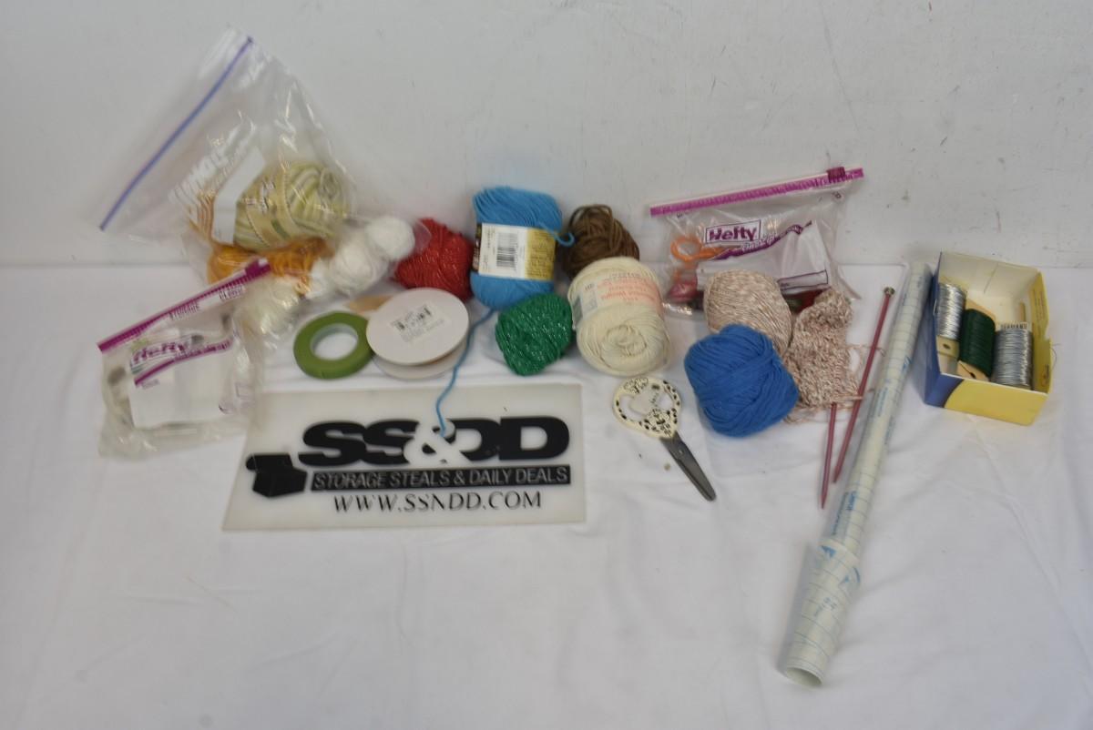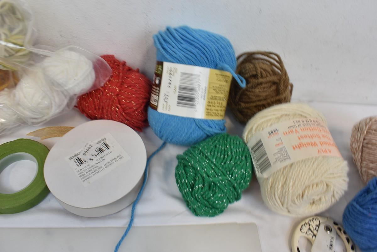 Craft Lot: Assorted Yarn, Scissors, Wire, Ribbon