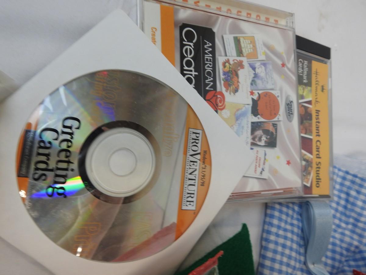 Craft Lot: Blue/White Quilted Gingham Material, Create A Card DVDs, Paint,Felt