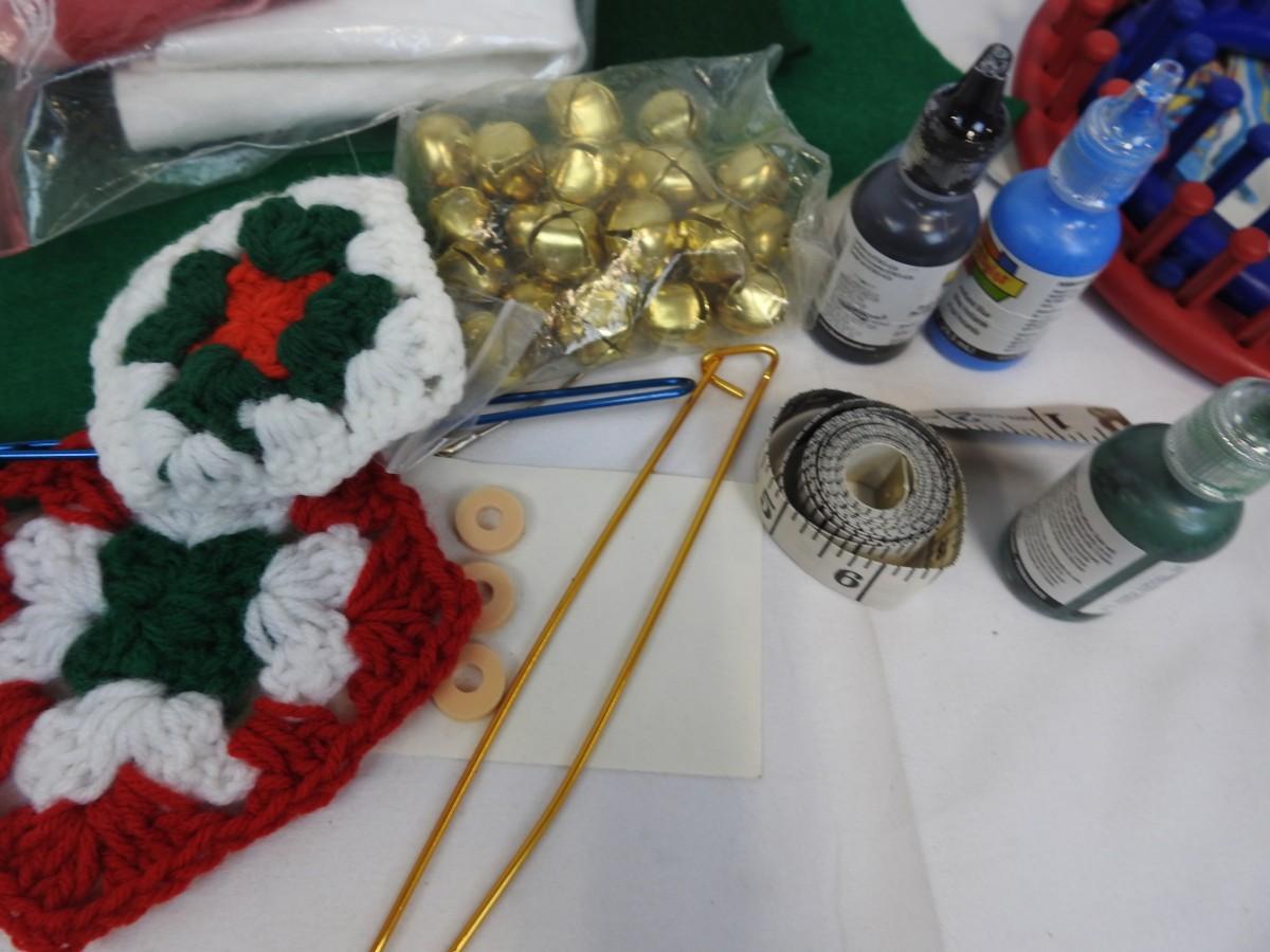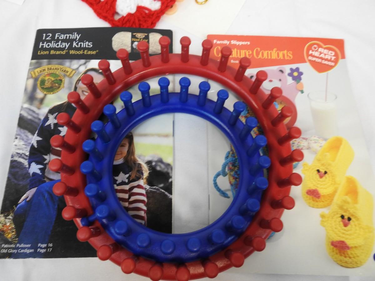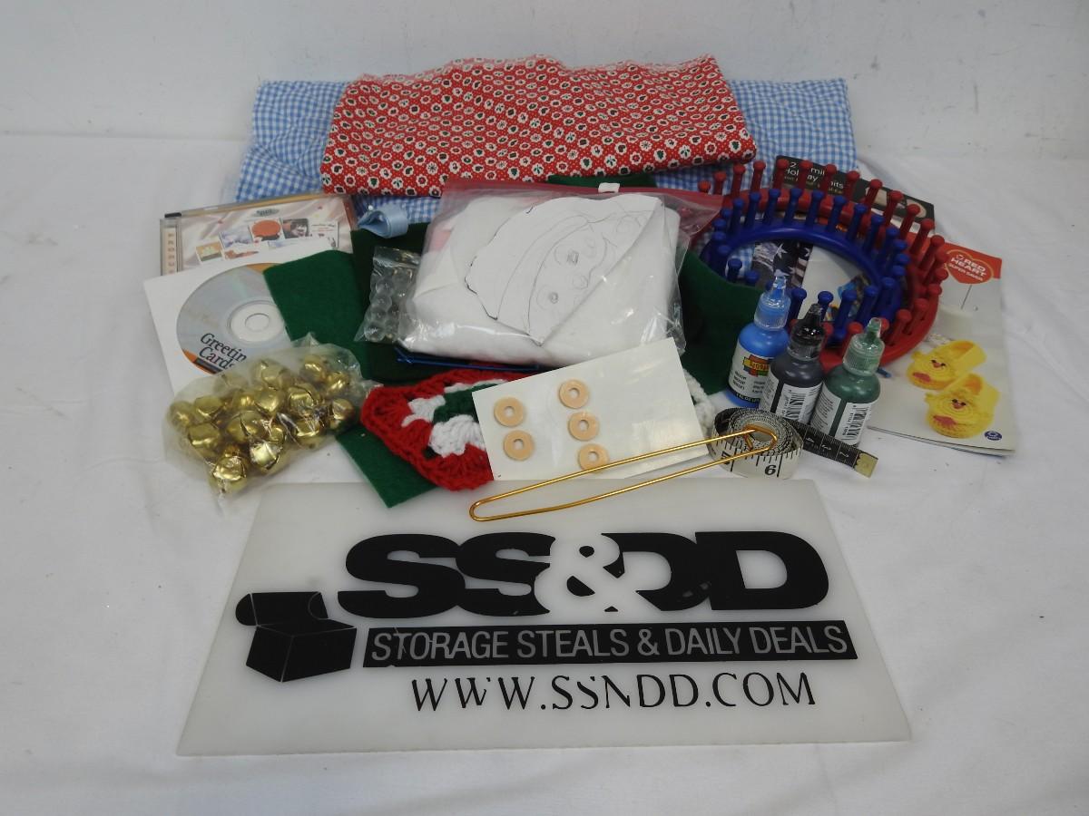 Craft Lot: Blue/White Quilted Gingham Material, Create A Card DVDs, Paint,Felt, Knitting Looms