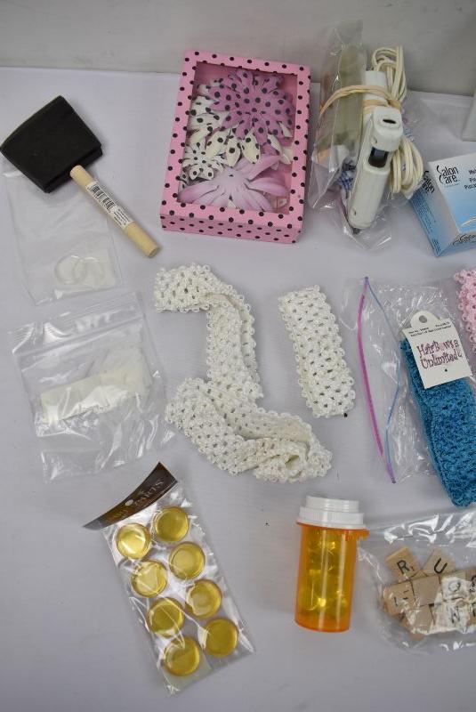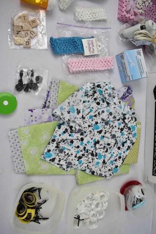 Craft Lot, Various Items: Fabric, Glue Gun, Clips, etc