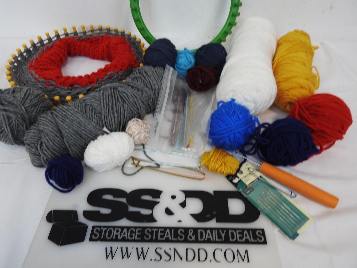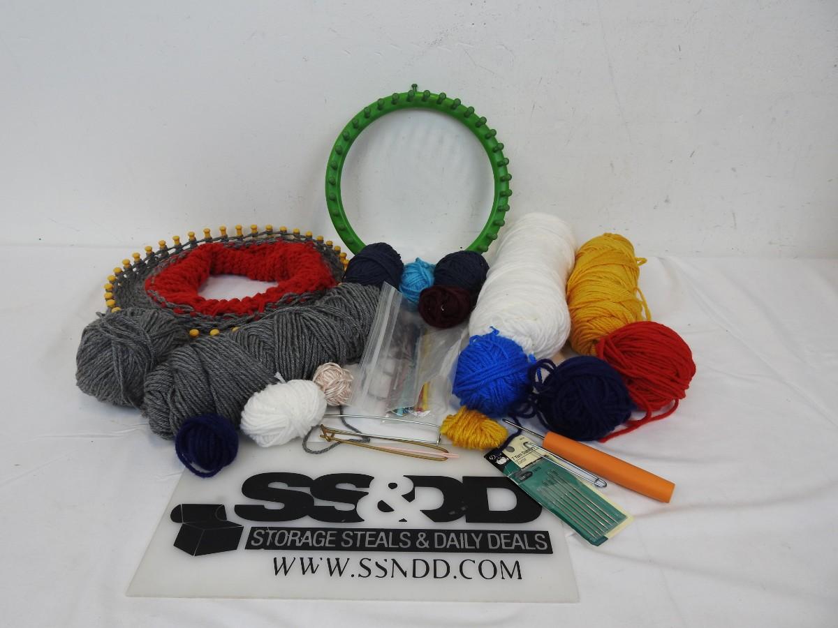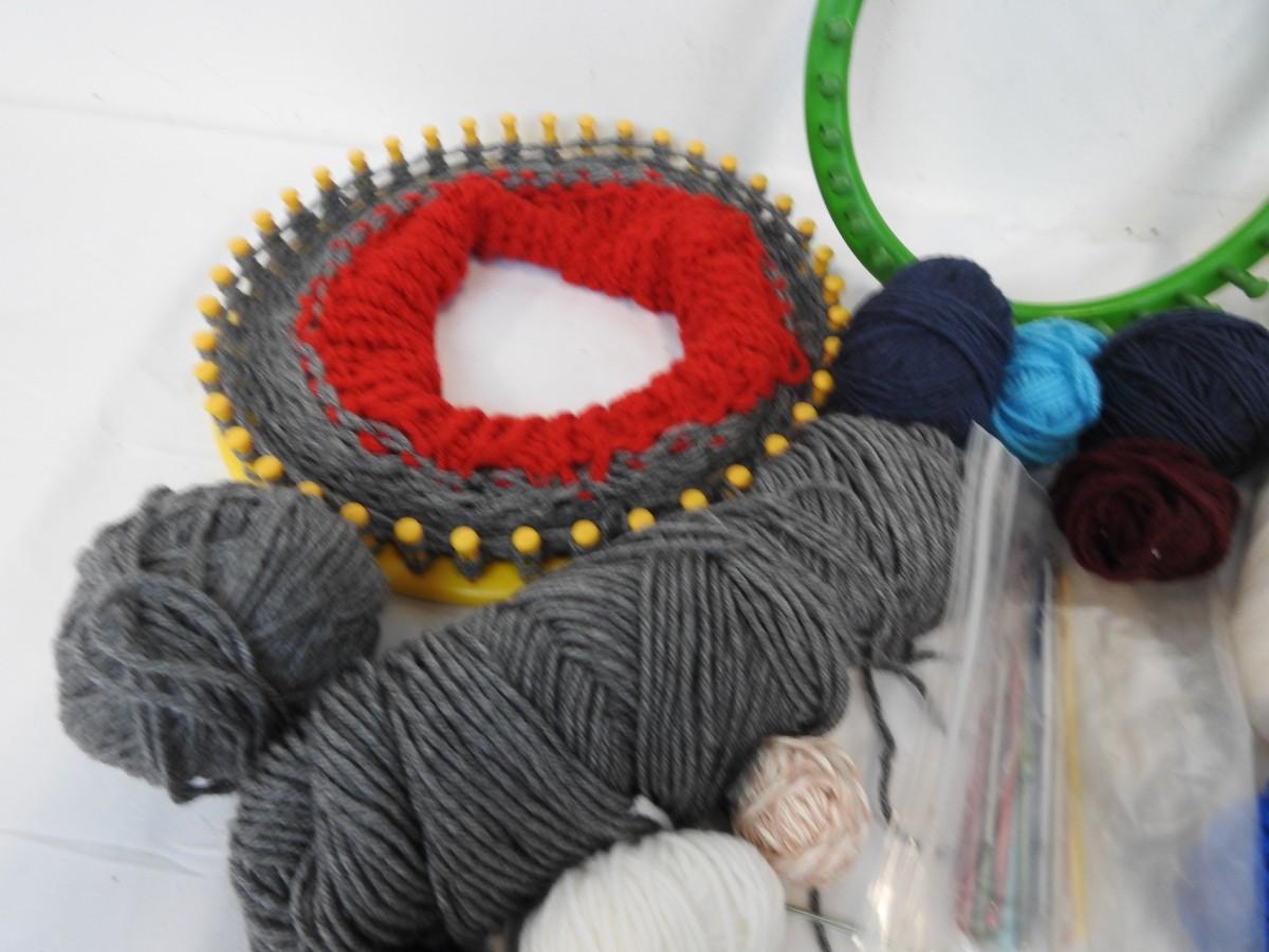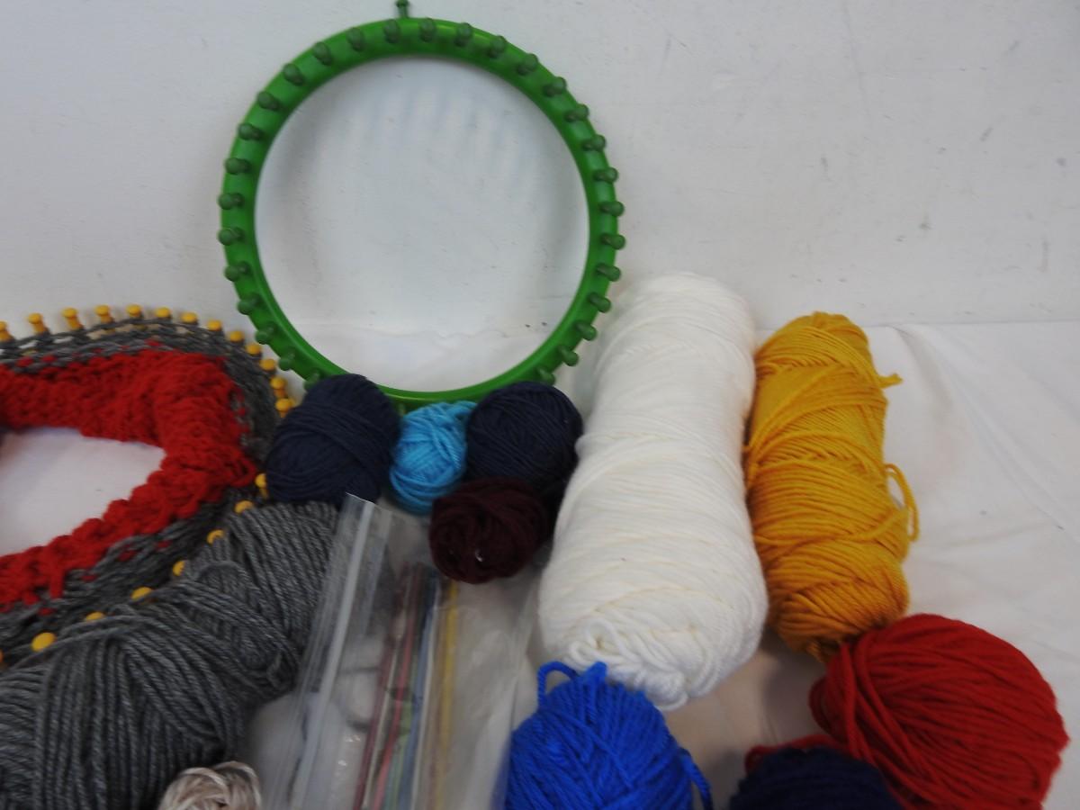 Craft Lot: Yarn, Round Knitting Looms, Hook, Crochet Hooks, Needles