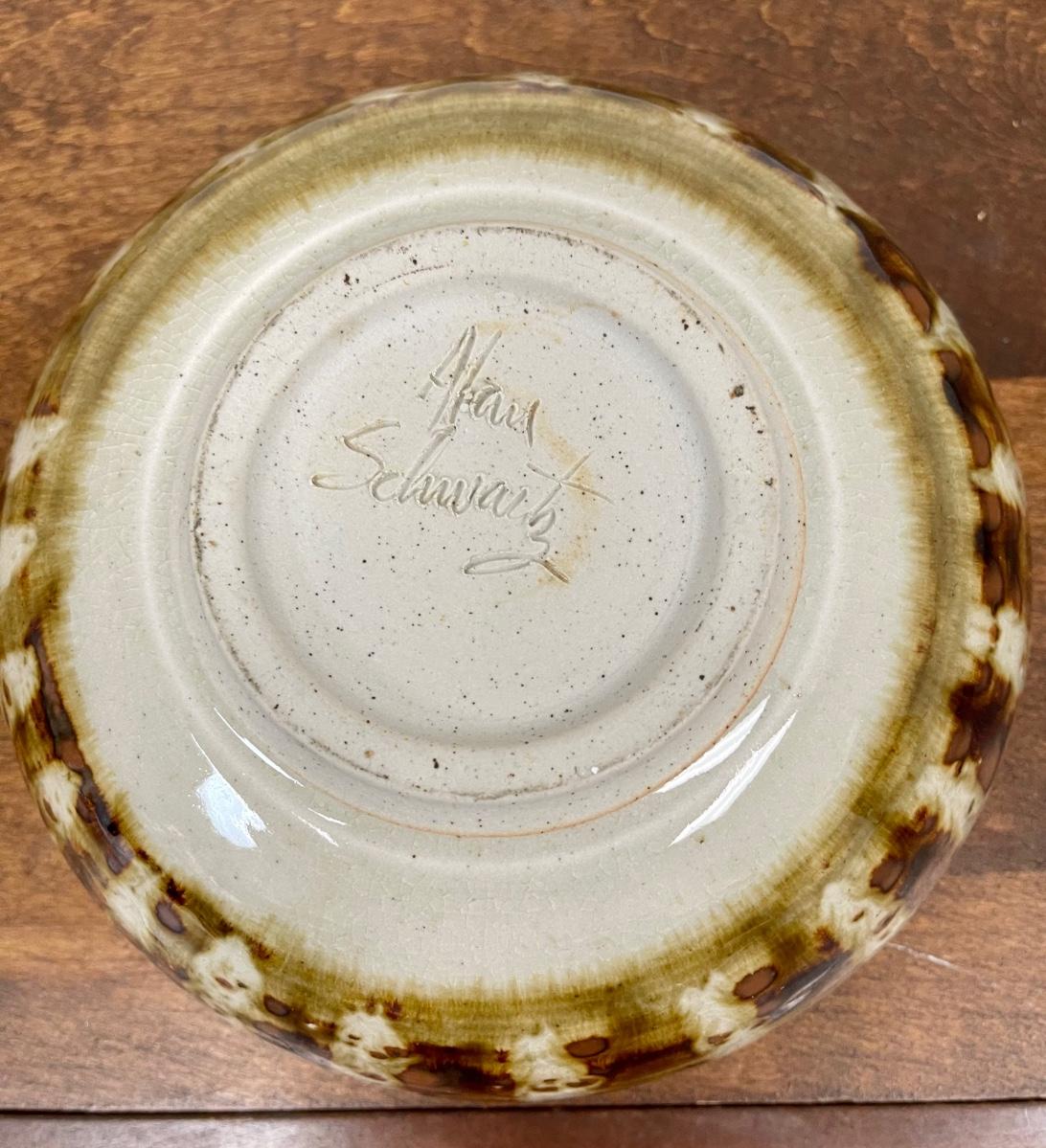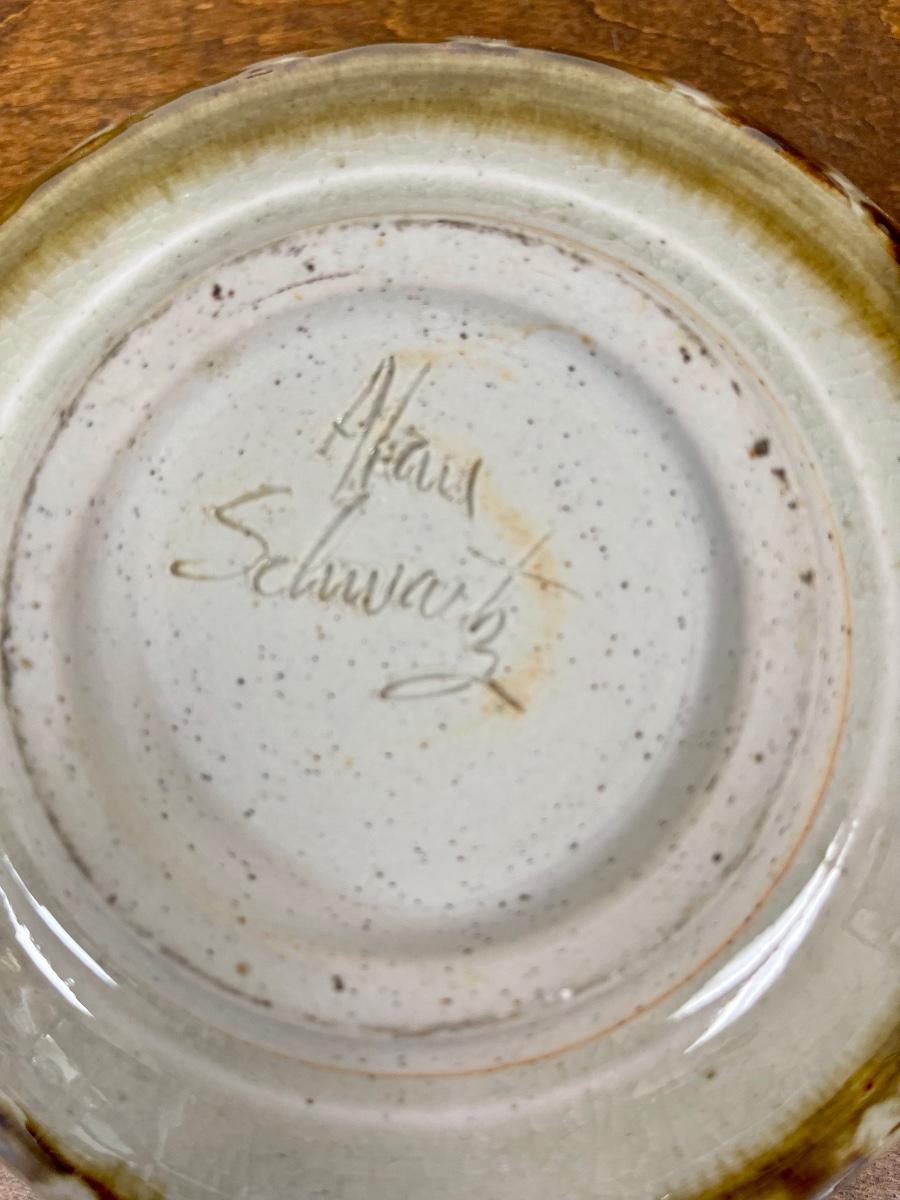 Vintage Hand Thrown Pottery Bowl Dish Artist Signed Schwartz