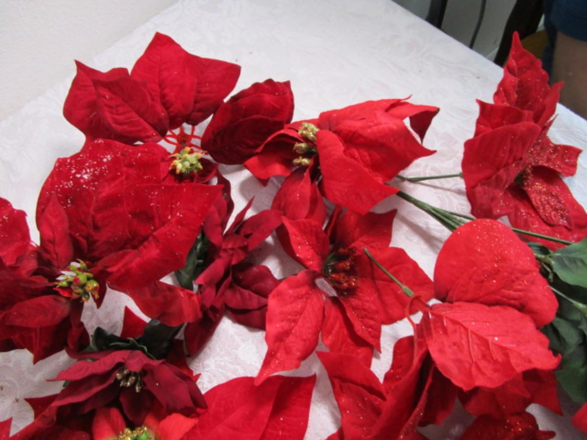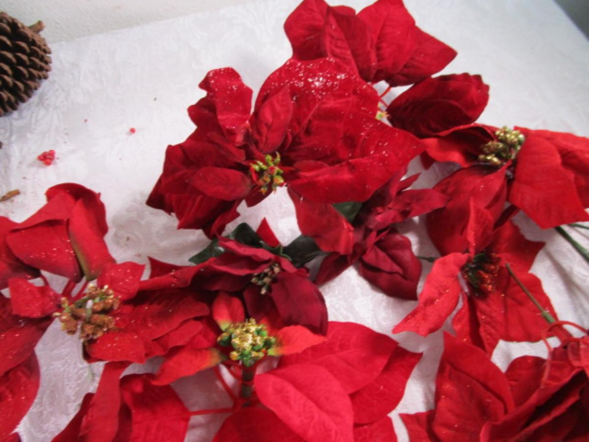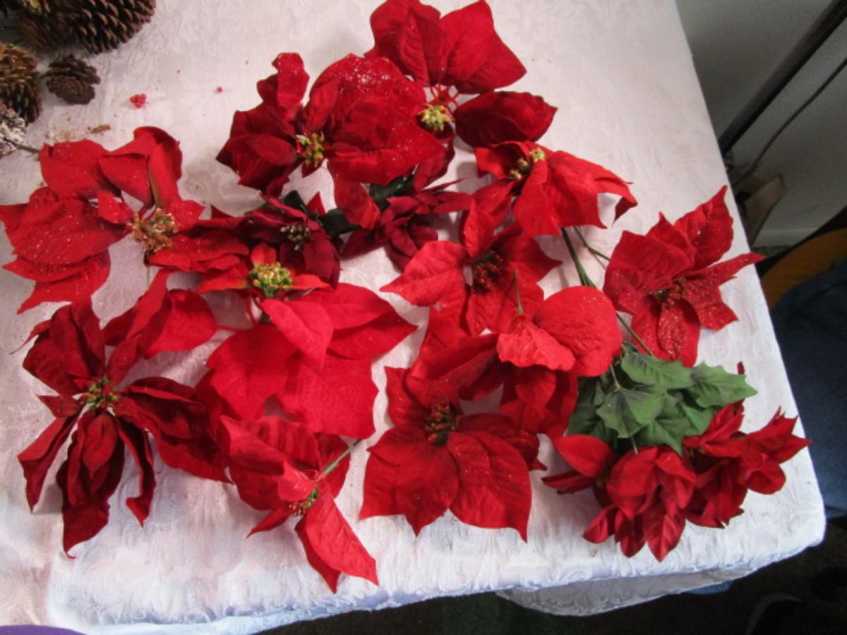 Red poinsettias, various sizes, 14 loose & 1 bush