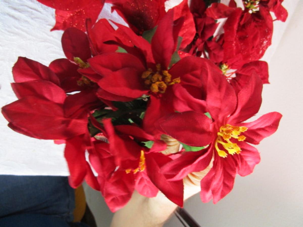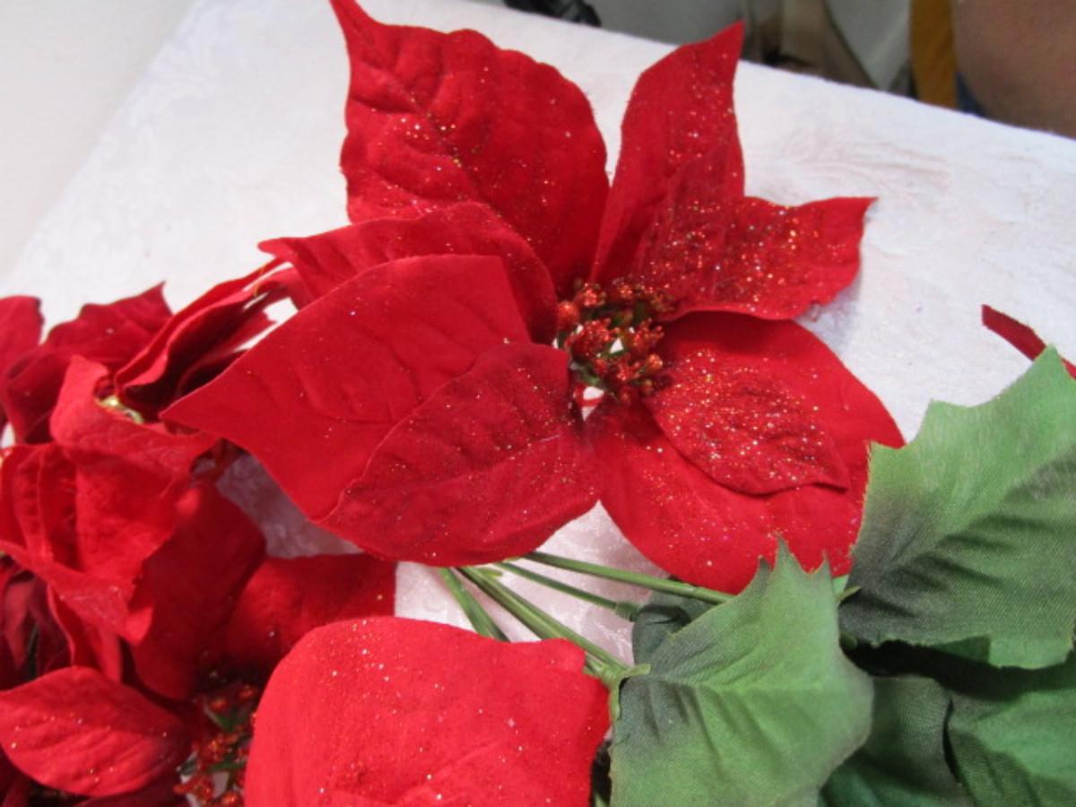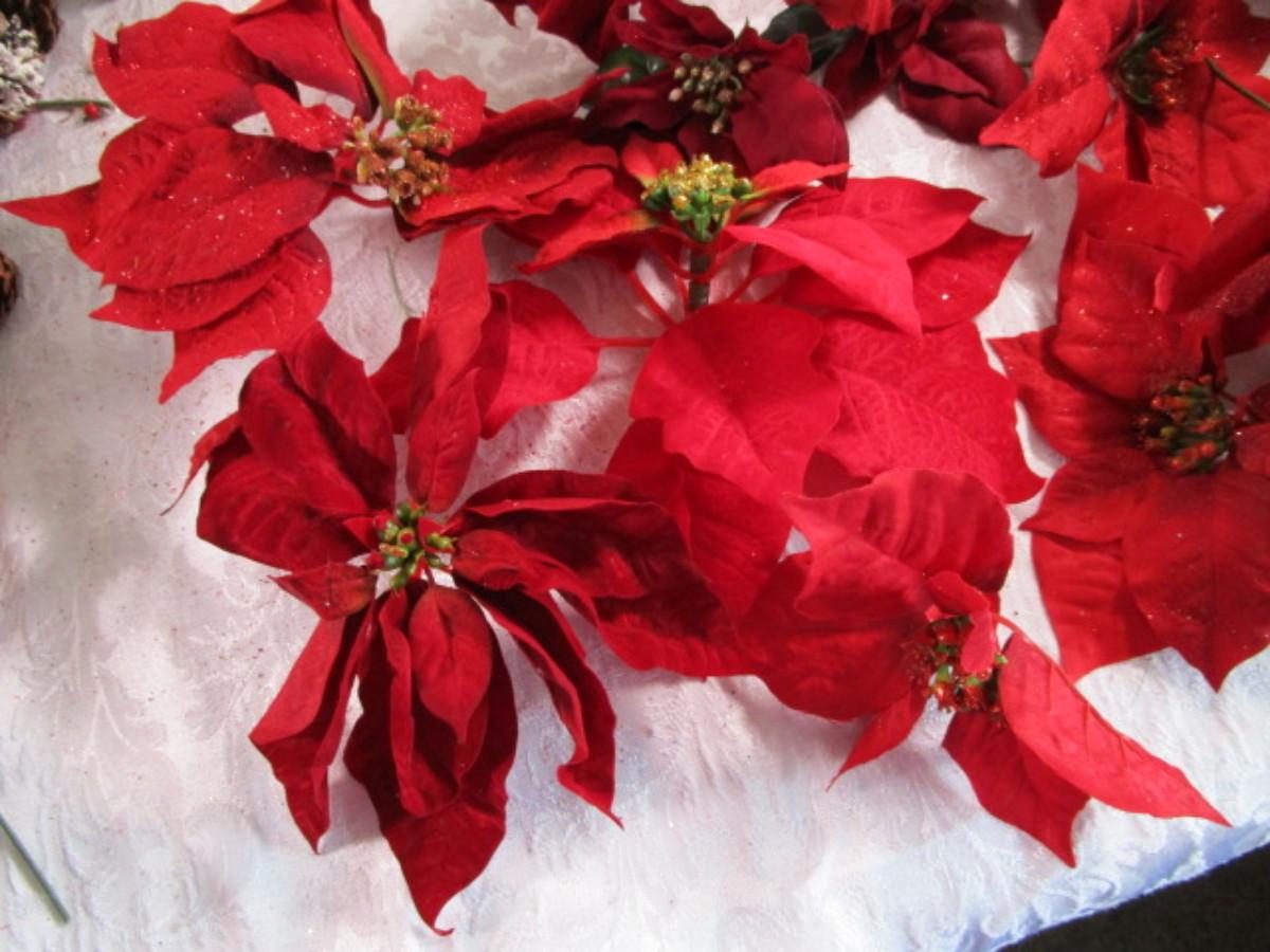 Red poinsettias, various sizes, 14 loose & 1 bush