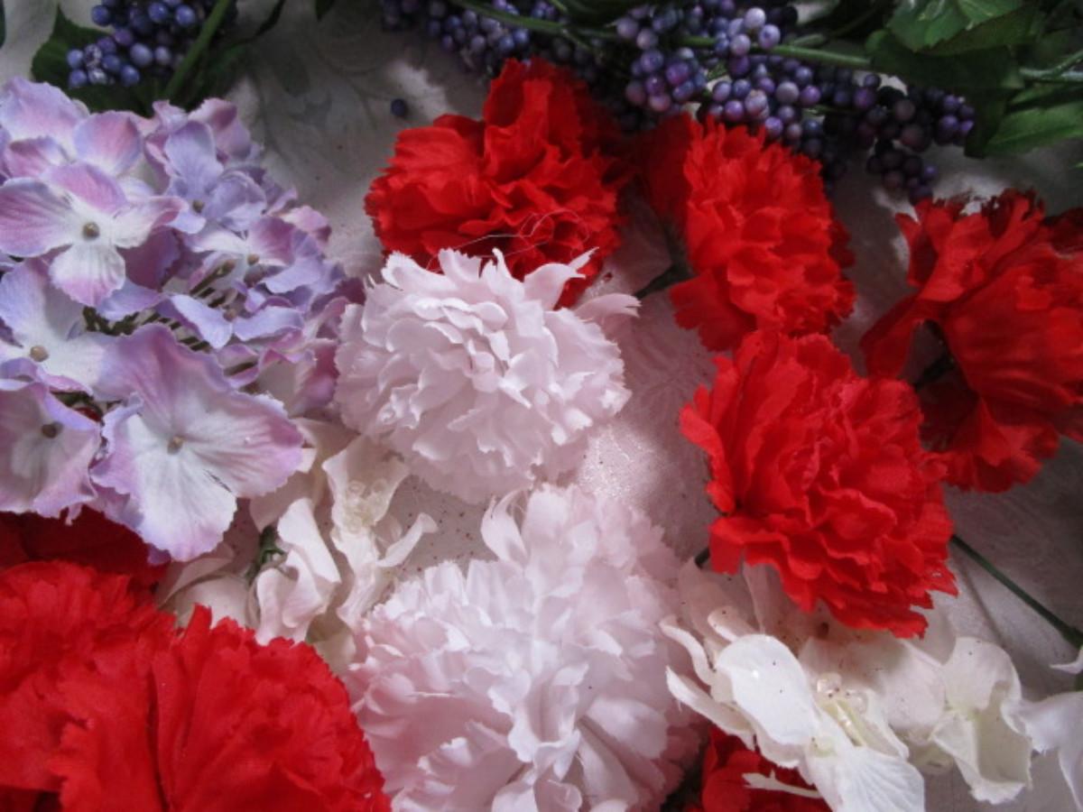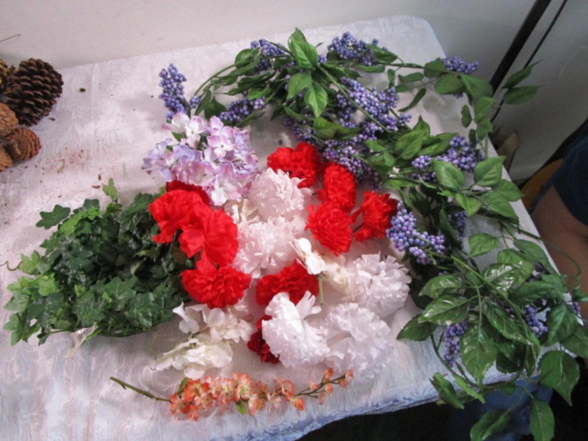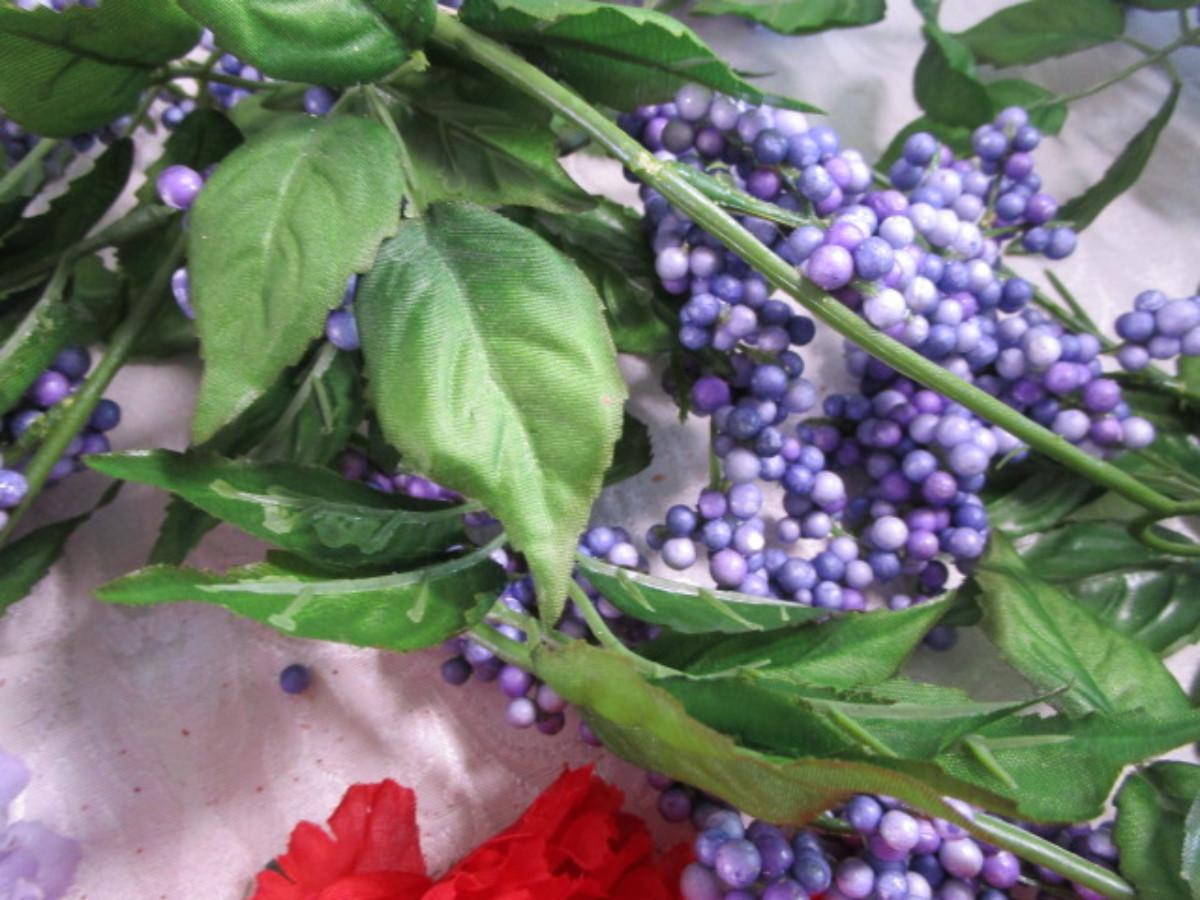 19 various loose flowers, 1 bunch of flowers, 6' ivy garland, 9' lilac berry garland