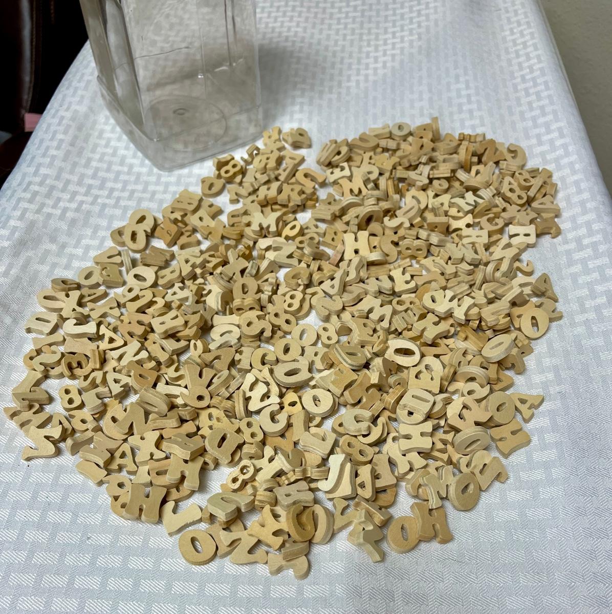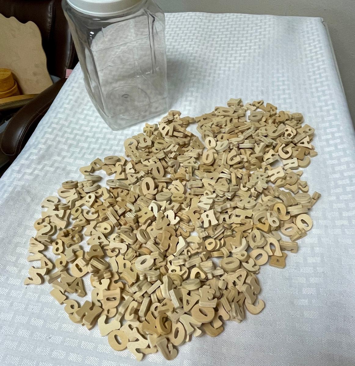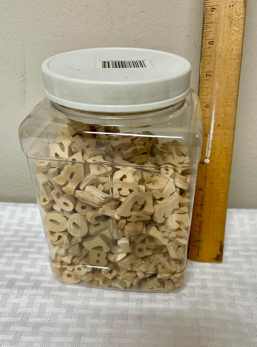 Craft supply - Large Plastic Jar with 100’s of wood cut out letters