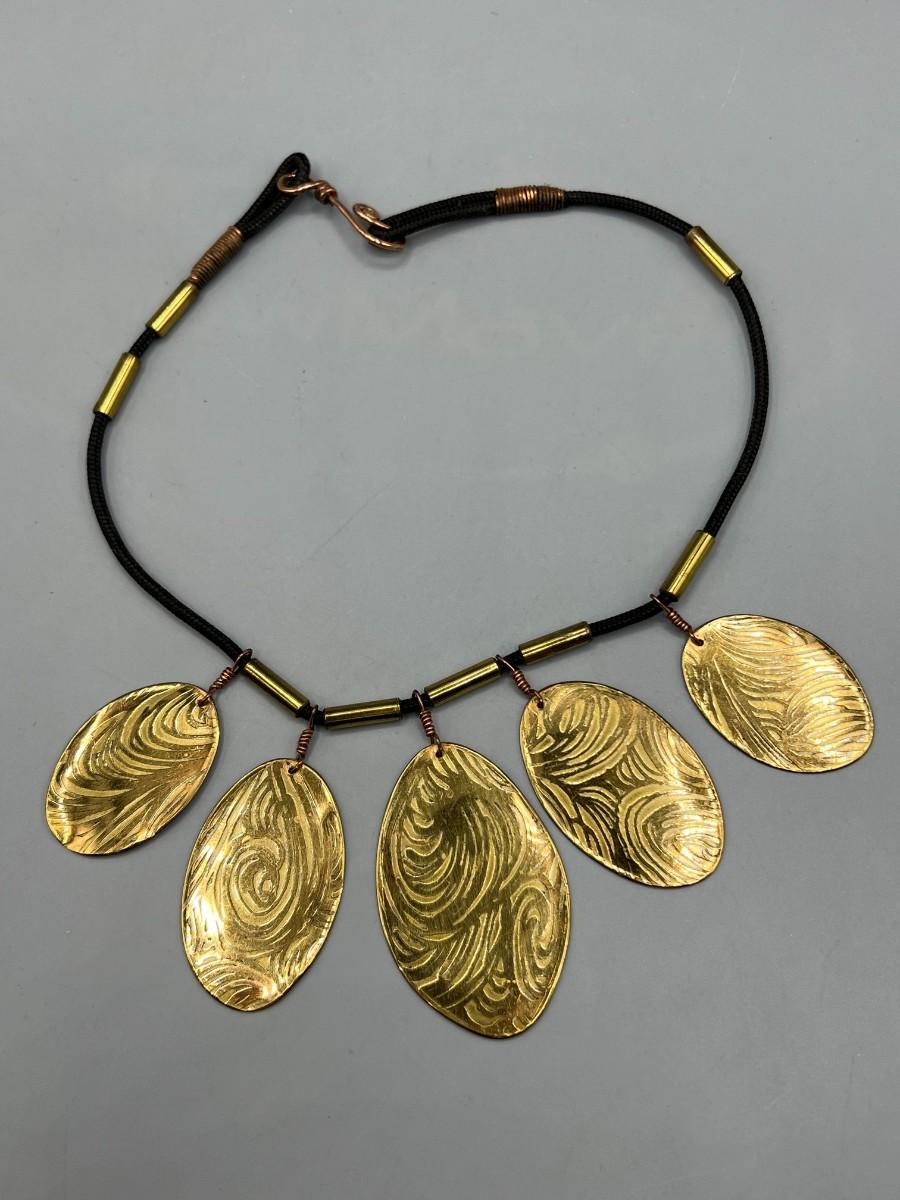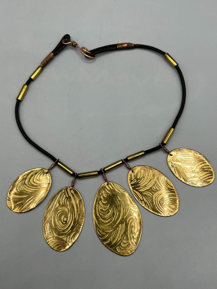 Crafted Brass Handwrought & Etched Designer Jewelry Medallion Necklace