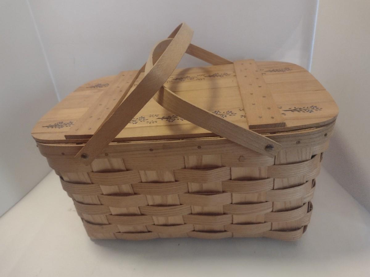 Crafted Oak Splint Wood Pic Nic Basket Basketville Putney, Vermont