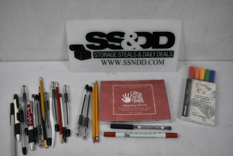 Crafting Pens & Markers (Fiskars & Close to my Heart) plus assortment of regular pens & pencils