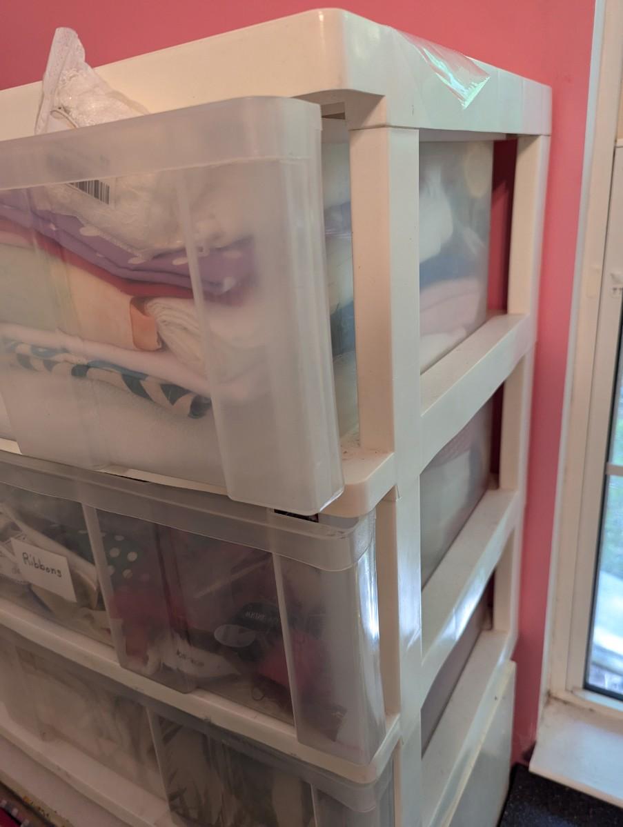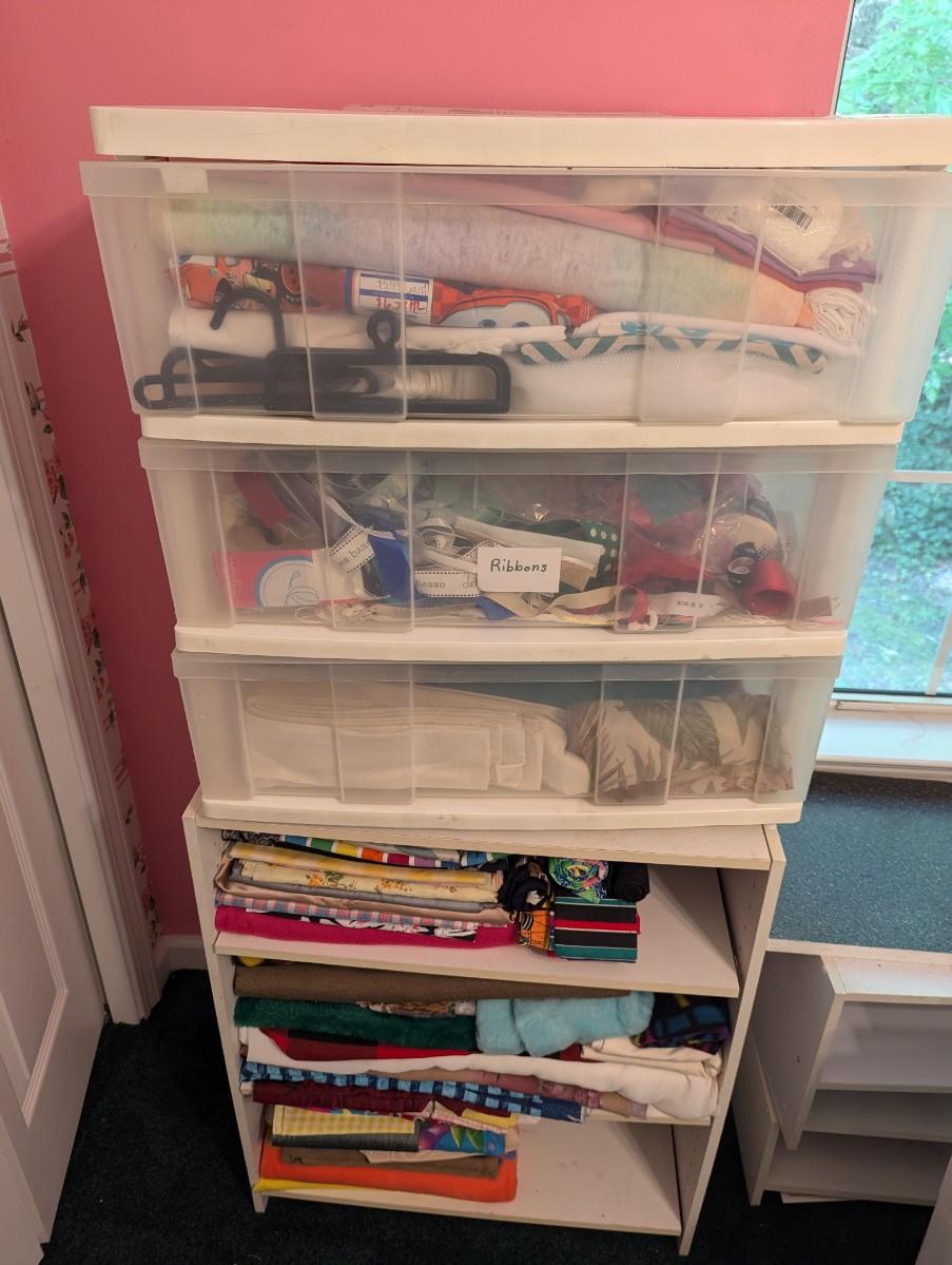 Crafting Supplies Fabric & Ribbons Bins & Shelf Included