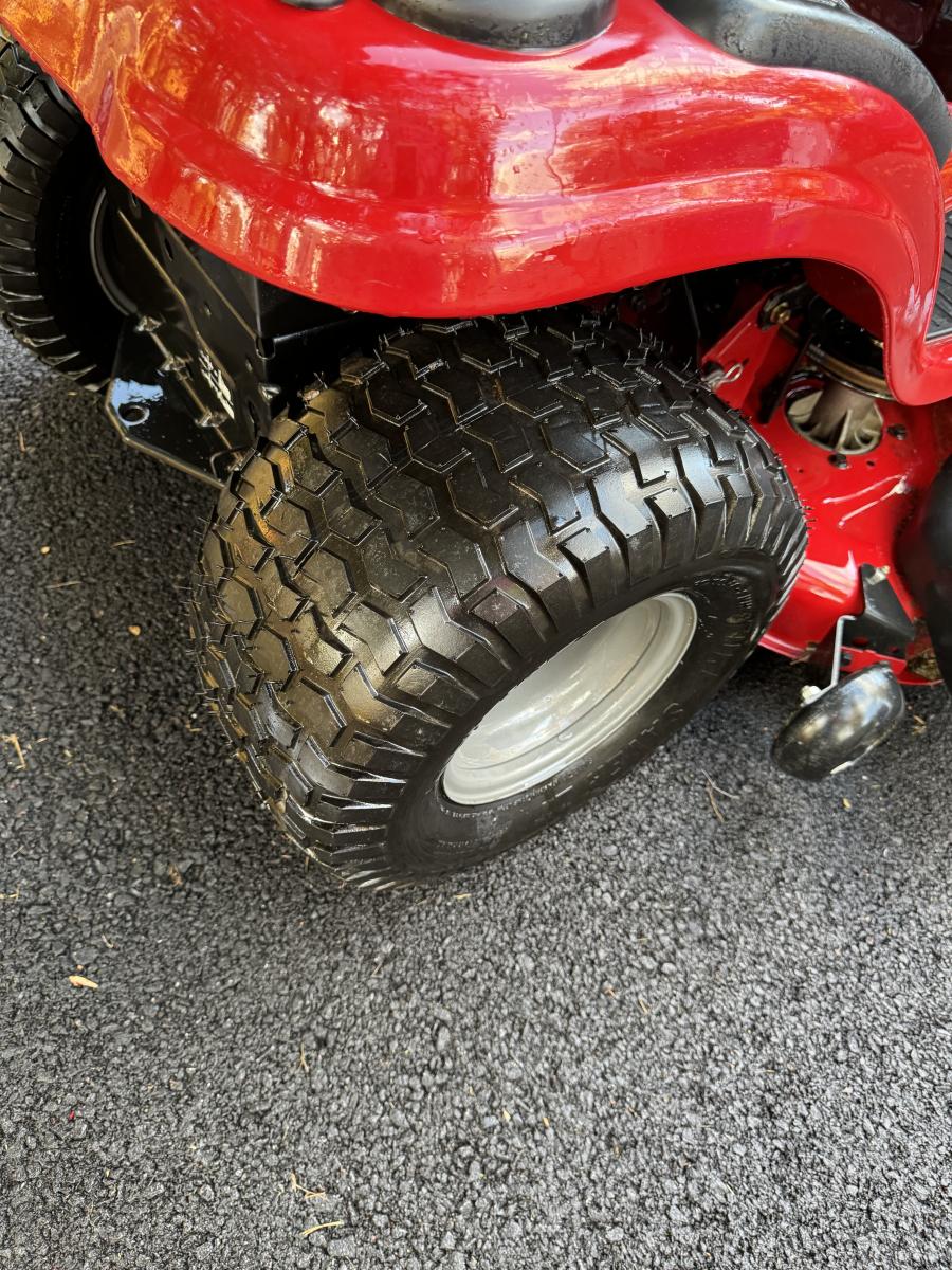 Tested - Could not start from sitting unused a few years - may need jump, battery or other minor work. Used only a few times total. Buying as is, as found in this wonderful estate. See MANY PHOTOS for content, condition and dimensions. Never a Buyers Premiums or Credit Card Fee. All lots start at just $10 and sell with No Reserve to the highest bidder. Like new, used less than 5 times. See knobs on front and rear tires in photos. Has been garage kept /stored for years due to professional yard service. Original key comes with the mower as shown in photos. Buying as is, as found.