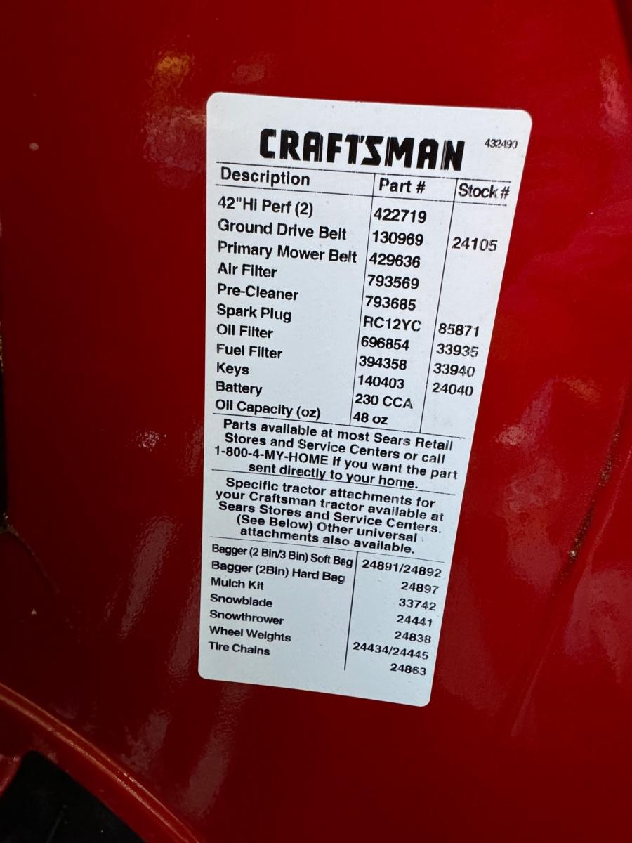 Craftsman Tractor 21HP 42” YTS3000