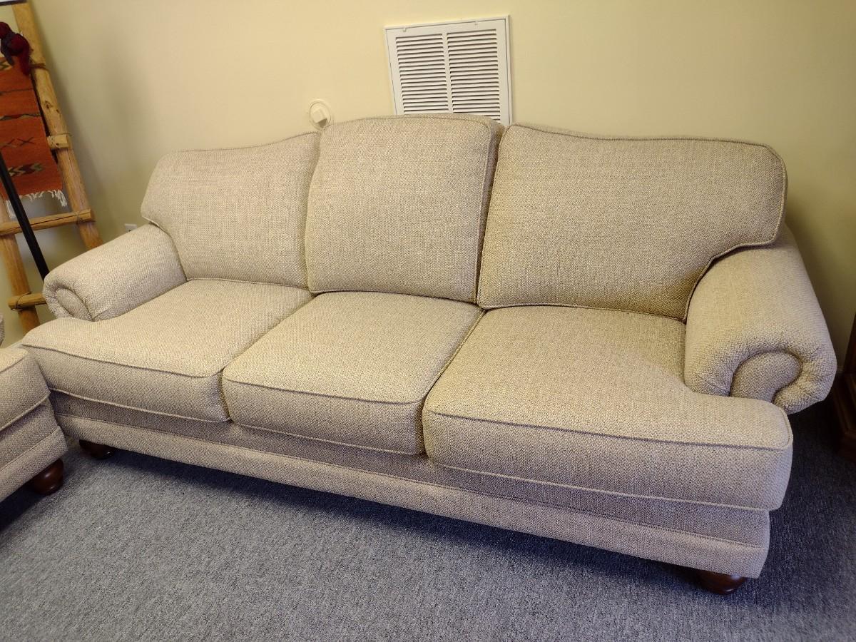 Craftmaster Three Cushion Couch Wheat Color. Downstairs item will need assistance removing from the home.
