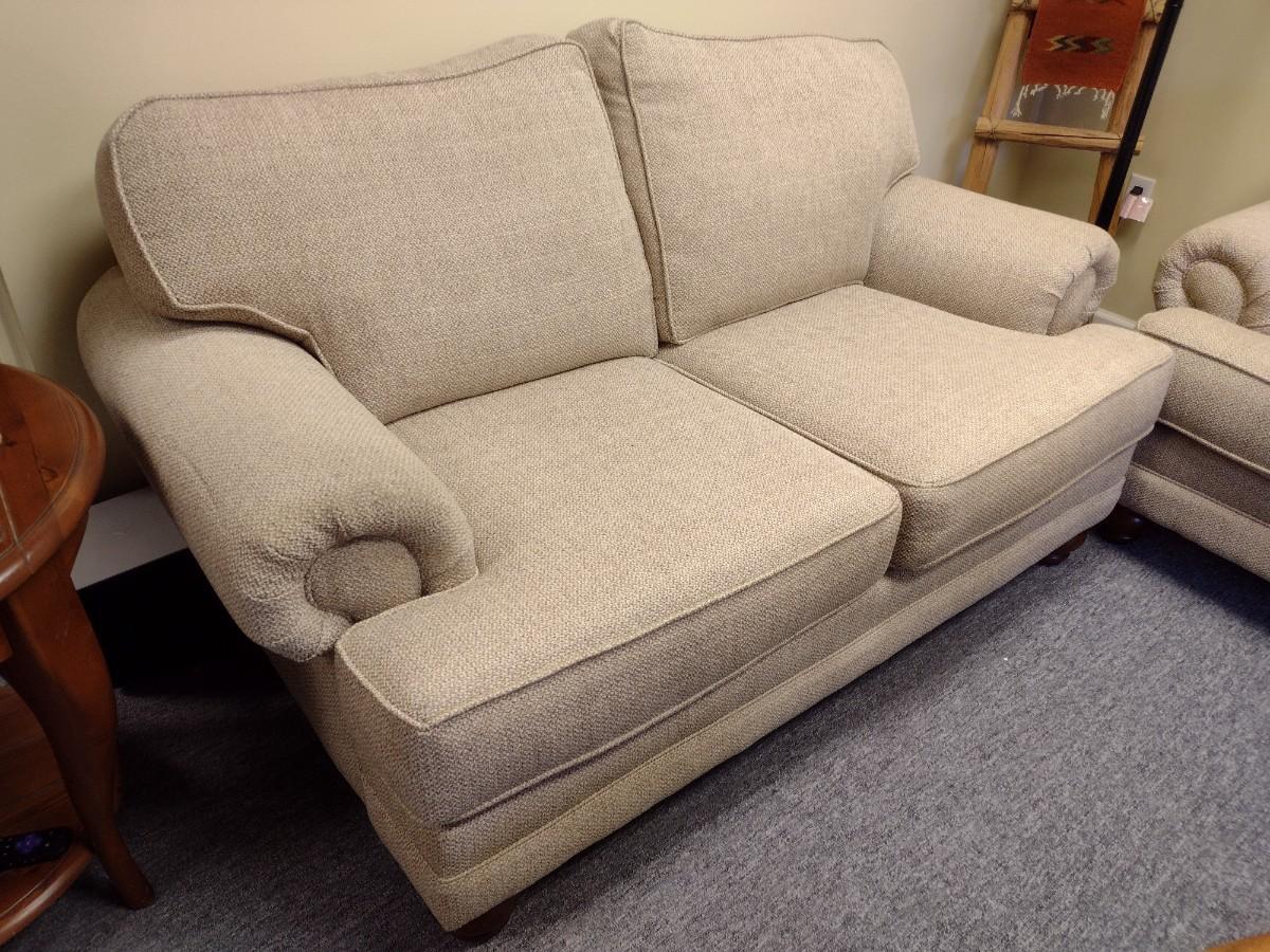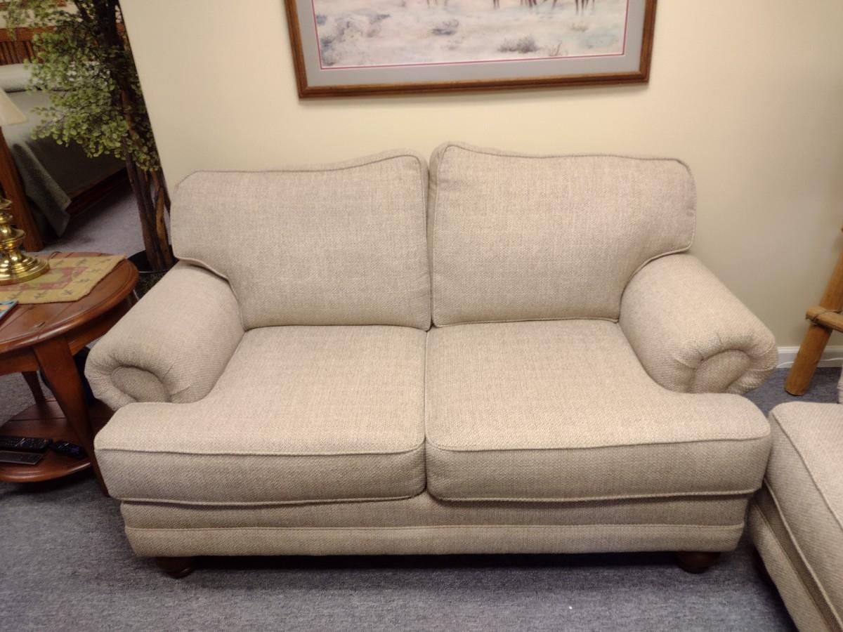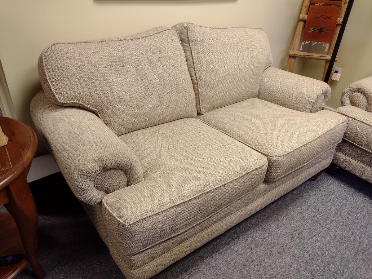CraftMaster Two Cushion Loveseat Wheat Color. Downstairs item will need assistance removing from the home.