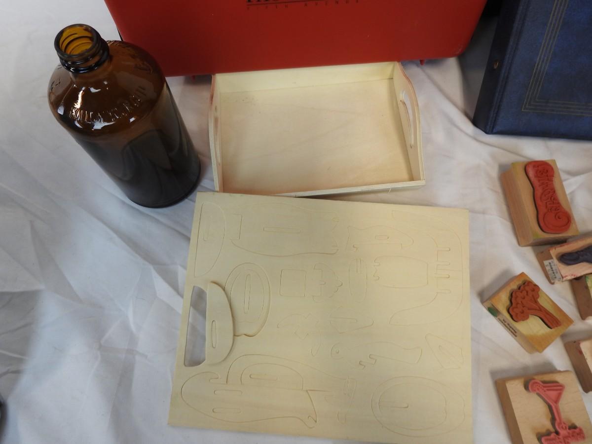 Crafts Lot: Photo Album, Chalk, Rubber Stamps, Wooden plane kit