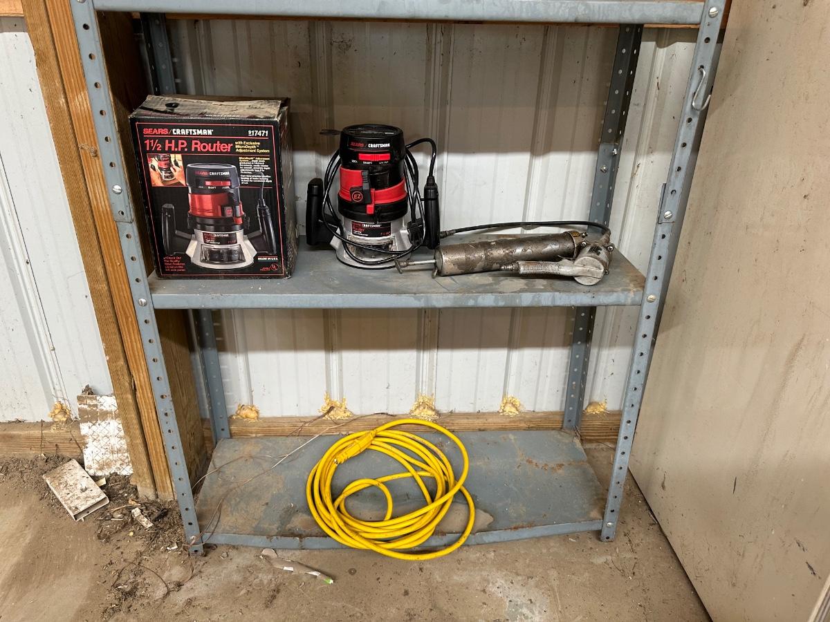 CRAFTSMAN 1 1/2 HP ROUTER, GREASE GUN AND EXTENSION CORD