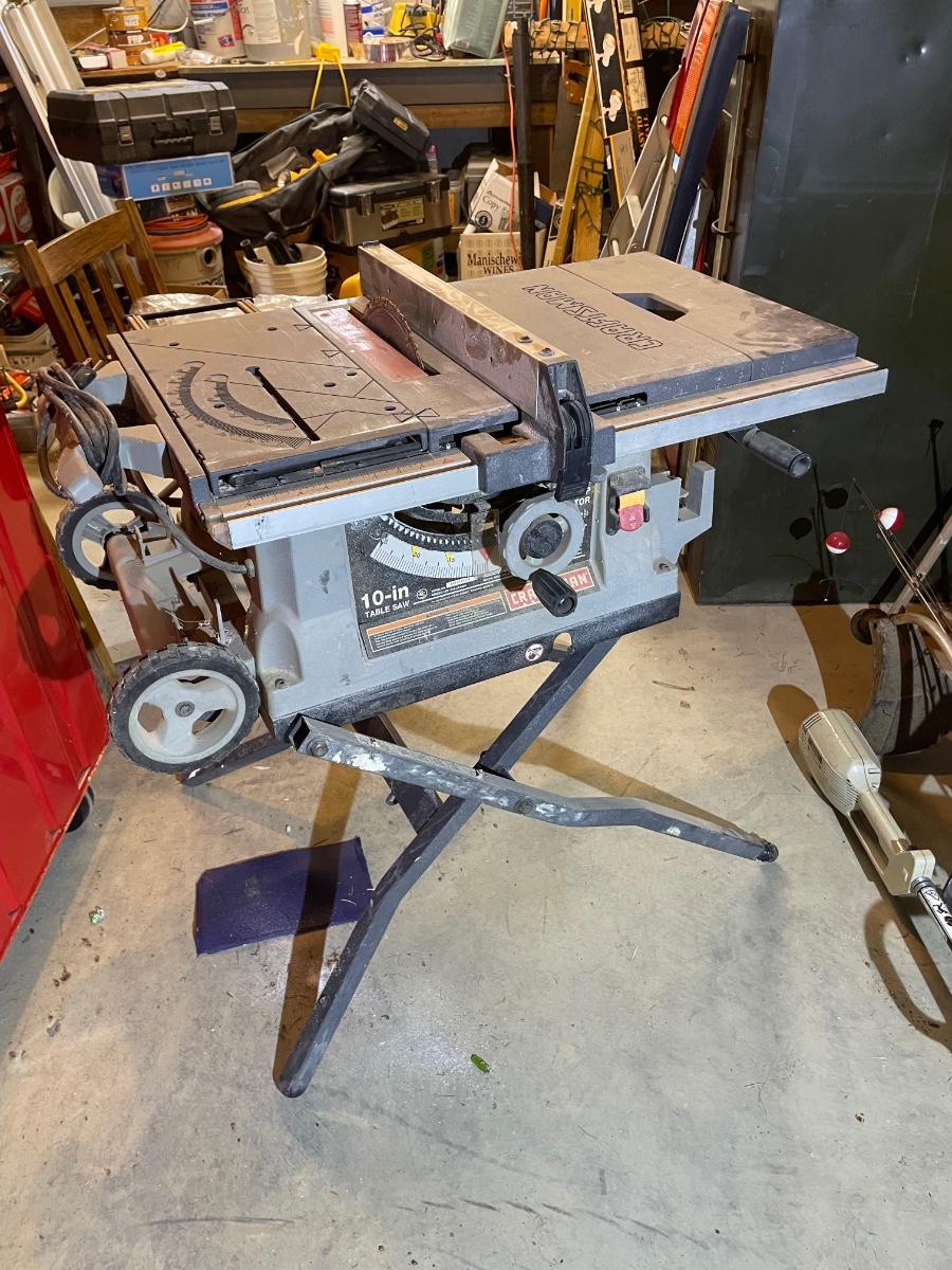Craftsman 10" Table Saw 15 amp with legs. Good Condition