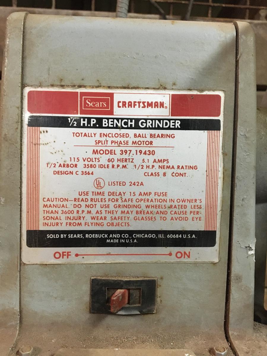 Craftsman 1/2 HP Working Bench Grinder on stand