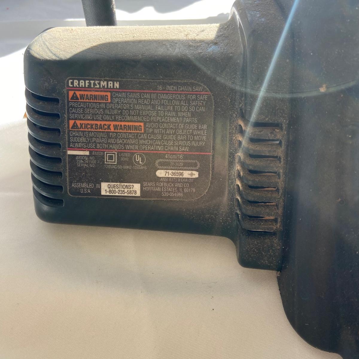 This lot is a 16” 3.5 HP Craftsman electric chainsaw. It does turn on. While the blade is 16” the entire item measures 32” x 9” x 9”. Local pick up only.