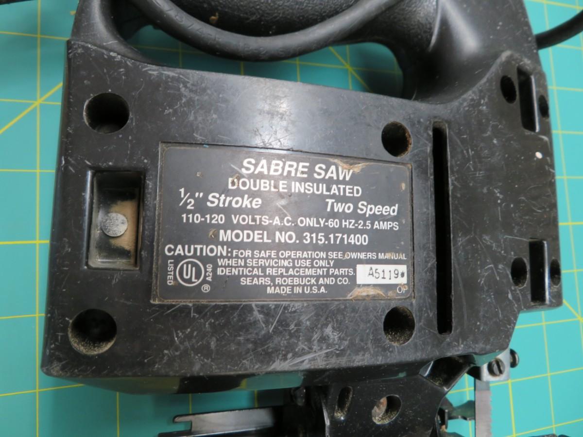 Sears CRAFTSMAN SABRE Saw 1/6 HP 1/2" Stroke, 2 Speed with 1 Bosch blade installed.