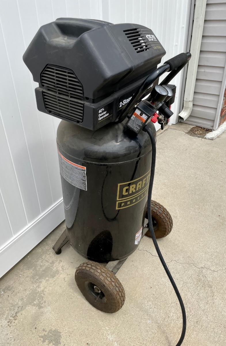 Used Craftsman 175 PSI Air Compressor with 25 Gal Tank. On a wheeled cart.
